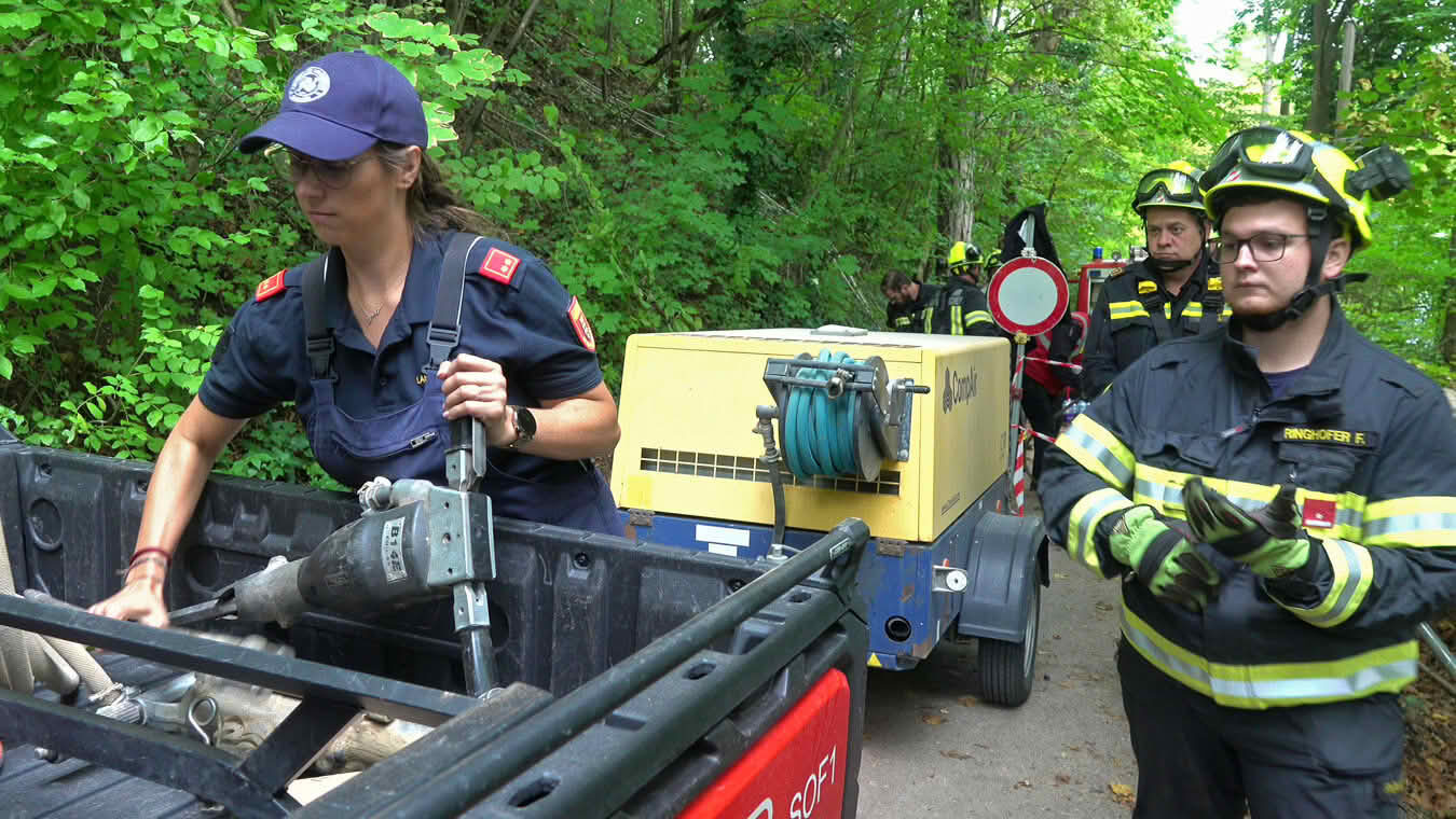 Der Sonderdienst Sprengdienst des NÖ Landesfeuerwehrverbandes, dem auch Mitglieder der Feuerwehr St. Veit angehören – darunter Abschnittsfeuerwehrkommandant Brandrat Rudolf Hafellner – wurde alarmiert. Noch am Abend wurden alle notwendigen Vorbereitungen getroffen und die behördlichen Genehmigungen eingeholt. Parallel dazu errichteten die Feuerwehren Berndorf-Stadt und St. Veit/Triesting zum Schutz der Bahnstrecke einen acht Meter langen Schutzwall aus Pölz-Holz entlang des gefährdeten Trassenabschnitts.