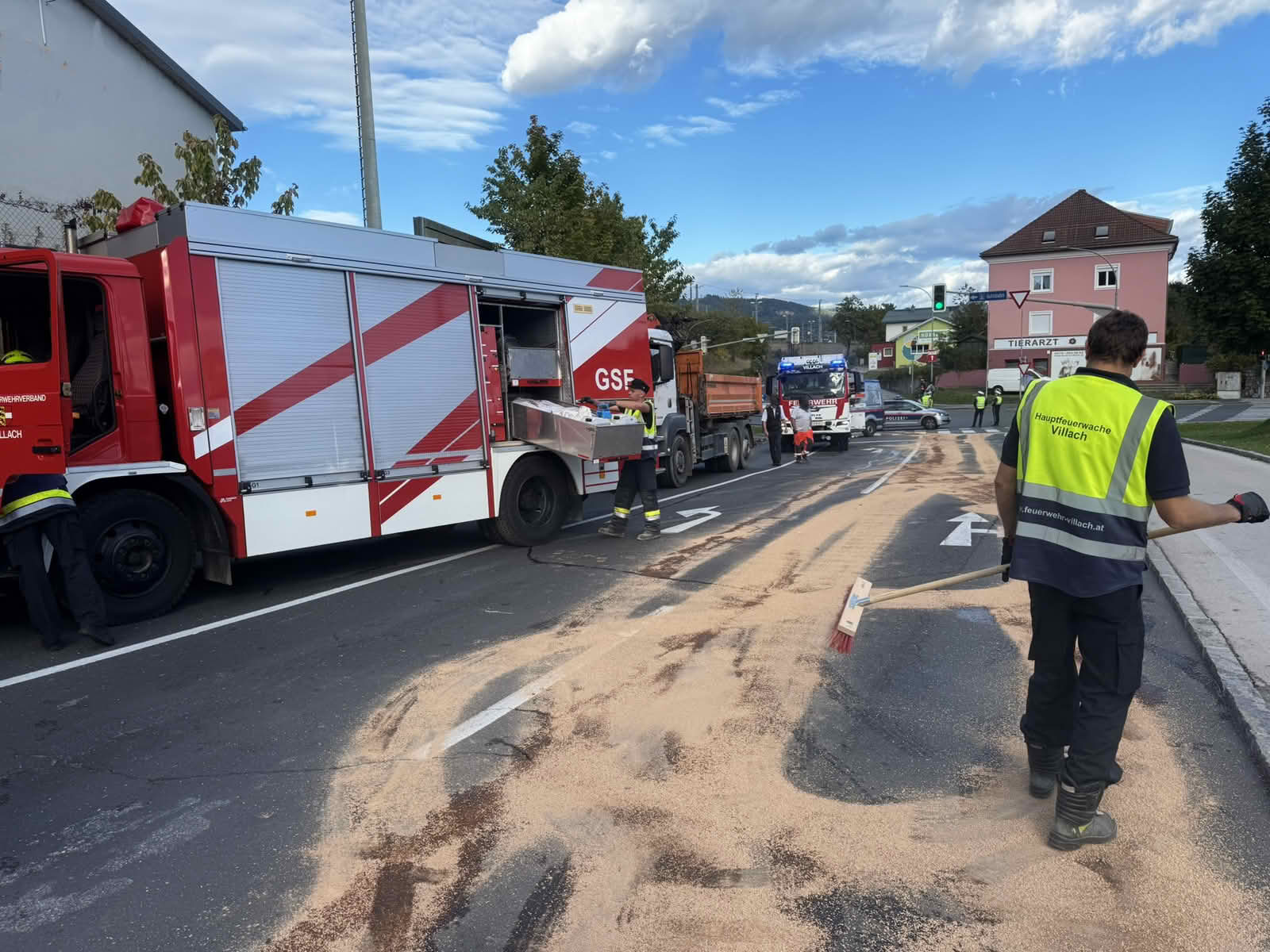 Nach der polizeilichen Unfallaufnahme wurde die Fahrbahn von der Feuerwehr gemeinsam mit dem Wirtschaftshof der Stadt Villach mittels Kehrmaschine gründlich gereinigt. Die Klagenfurter Straße war im betroffenen Bereich für die Dauer der Arbeiten komplett gesperrt. Die Unfallfahrzeuge wurden von einem privaten Abschleppunternehmen abtransportiert.