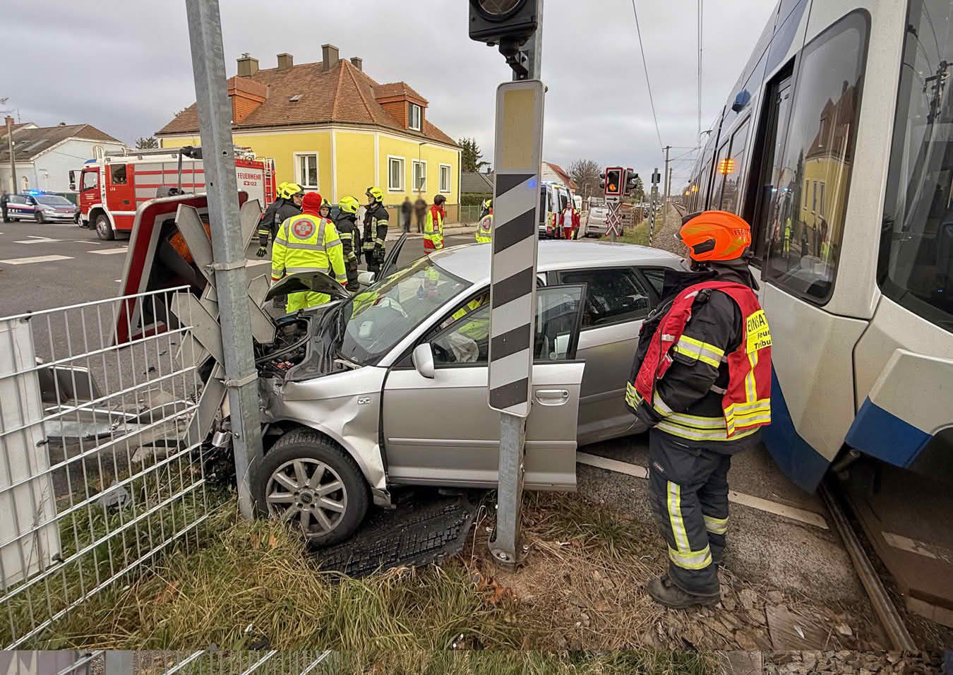 Zu einem Verkehrsunfall auf einem mit Lichtzeichen geregelten Bahnübergang kam es, am Mittwochnachmittag dem 03. Dezember 2025, im Ortgebiet von Tribuswinkel (Gemeinde Traiskirchen).
