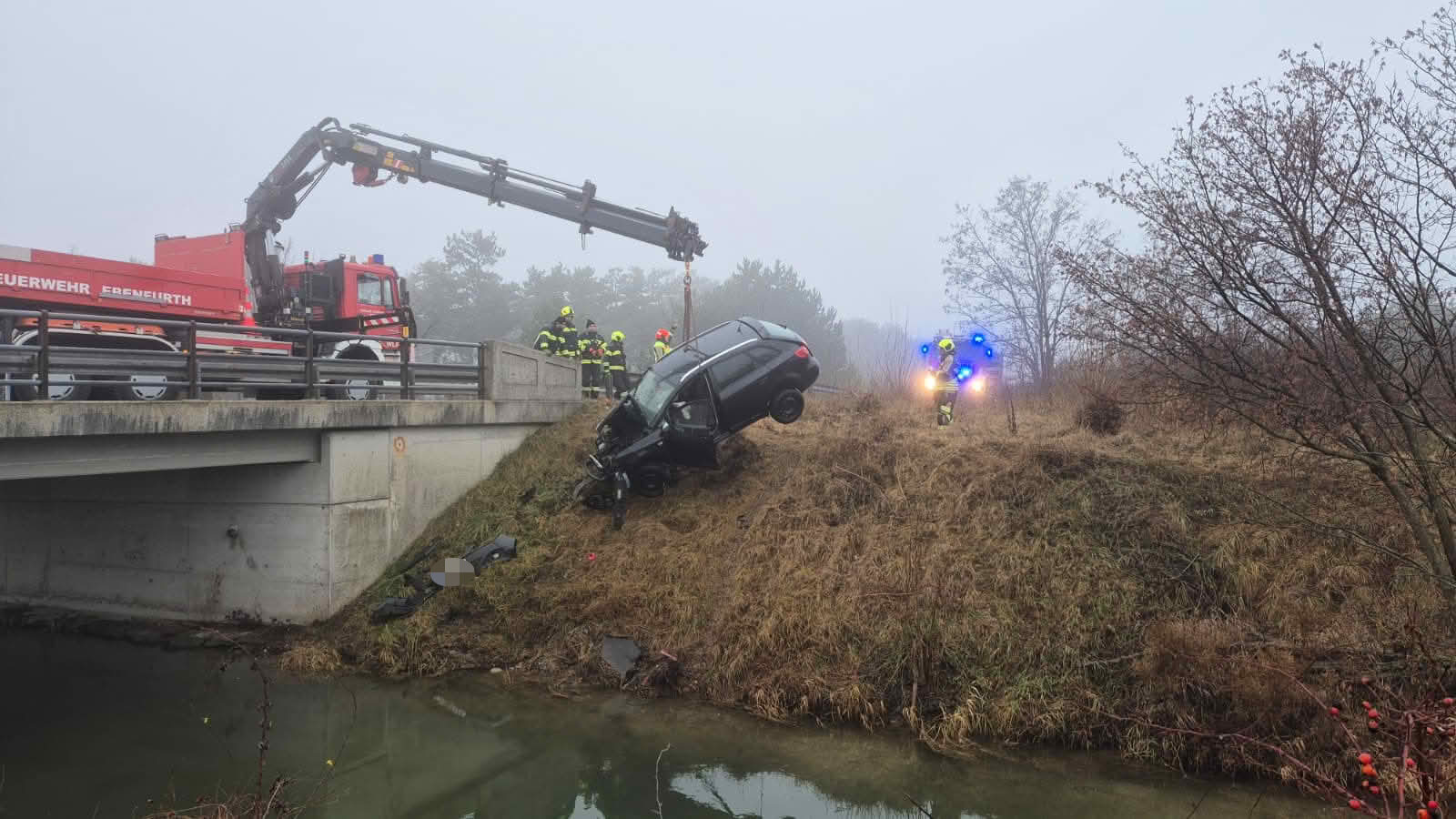 Ein Lenker kam kurz vor dem Wr. Neustädter Kanal von der Fahrbahn ab, hob über eine Leitschiene ab und schlug auf dem anderen Ufer in der Böschung ein. Der Lenker wurde dabei verletzt und durch den Rettungsdienst in ein Spital eingeliefert.