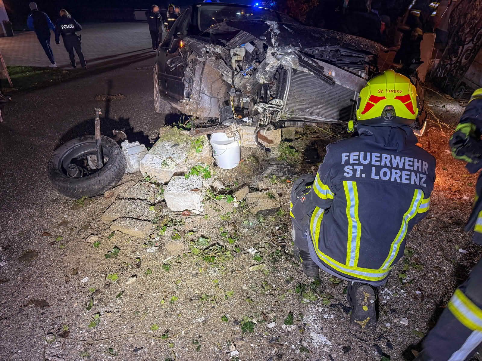 Am Samstag, 6.12.2025, wurde die Freiwillige Feuerwehr St. Lorenz um 23:17 Uhr mit dem Einsatzstichwort: „Verkehrsunfall – PKW gegen Mauer“ alarmiert.