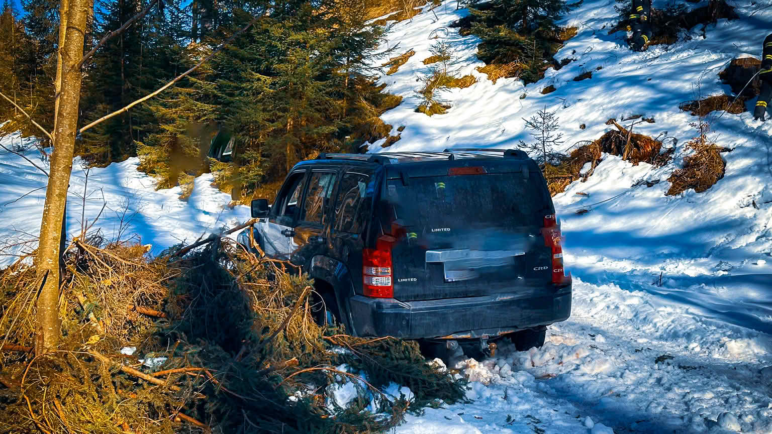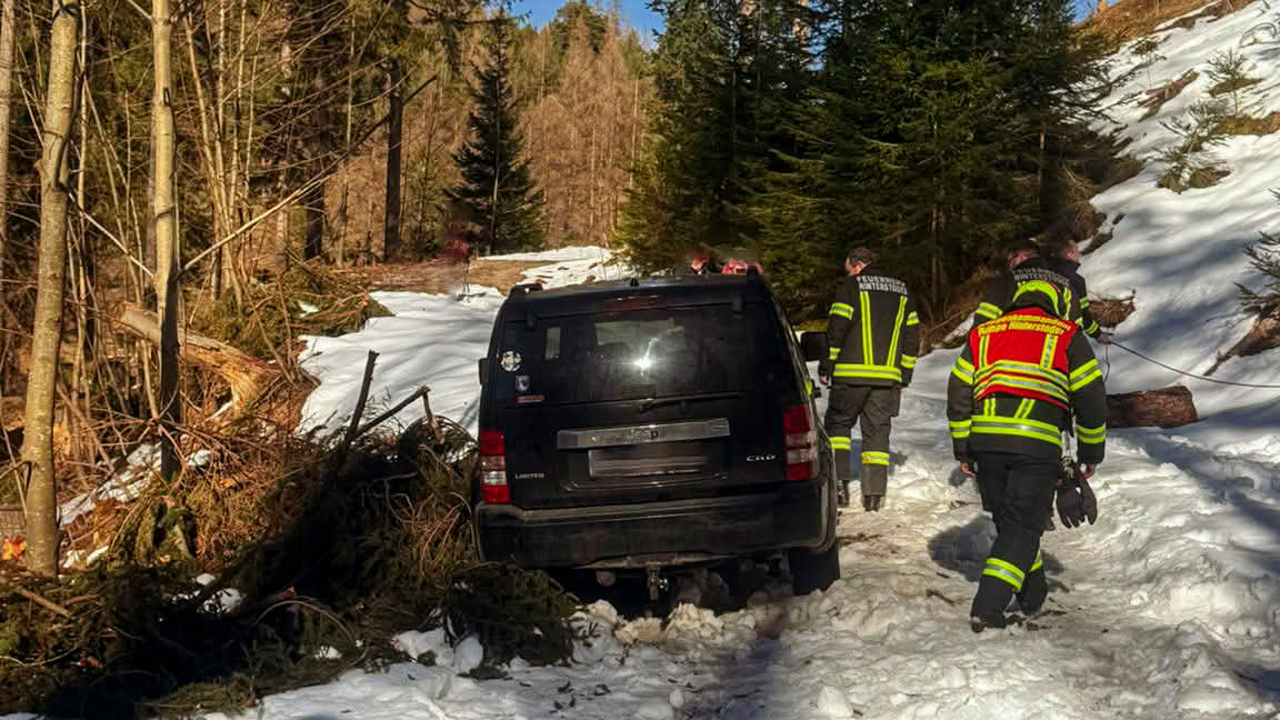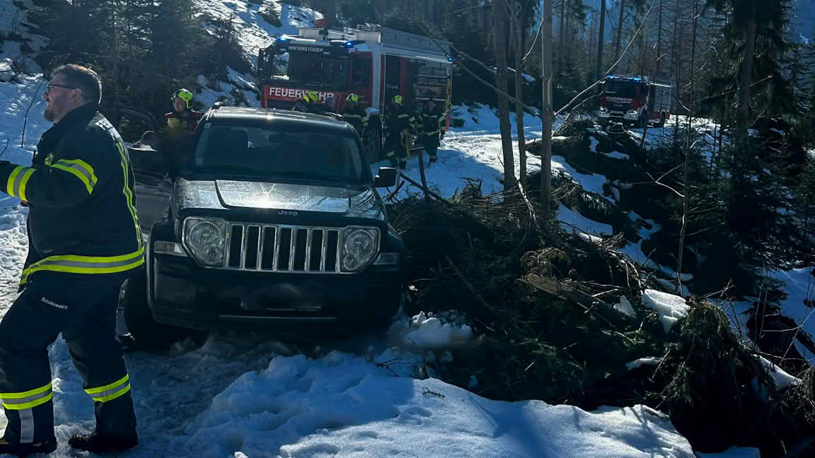 Dass auch ein Geländewagen bei winterlichen Verhältnissen an seine Grenzen kommen kann, zeigte sich heute Nachmittag auf der Forststraße Richtung Schafferreith. Ein PKW war auf der schneebedeckten Fahrbahn von der Straße abgekommen und blieb hängen.