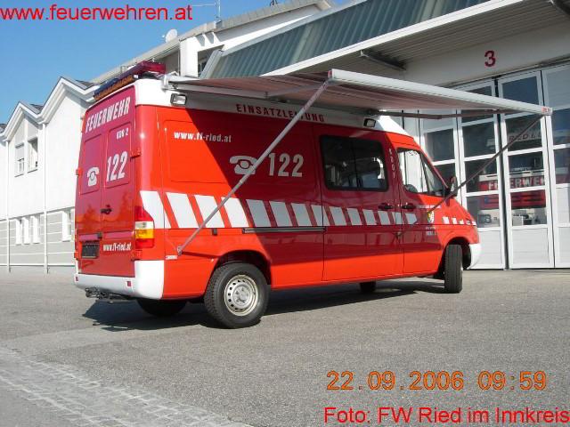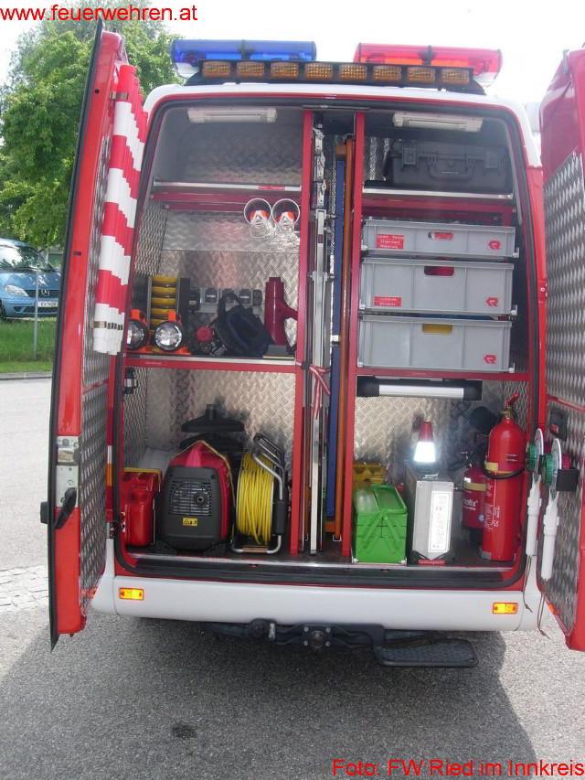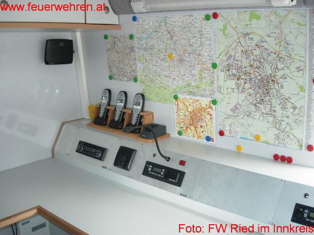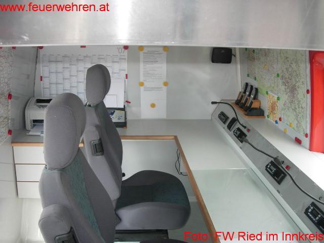 Das Fahrzeug wurde durch den Gerätewart der FF Ried und den zugeteilten Zivildienern, sowie fachkundigen Mitgliedern der FF Ried in einjähriger Bauzeit von Grund auf völlig neu aufgebaut. Dazu gehörten das Ausschneiden von Fenstern im Kastenaufbau, der Einbau von Zwischenwänden, Einbau einer Umfeldbeleuchtung und die Auskleidung des Aufbaues mit den Möbeln. Die funk- und fernmeldetechnische Ausstattung, sowie die Warneinrichtungen mit Suchscheinwerfer wurden ebenfalls in Eigenregie eingebaut.