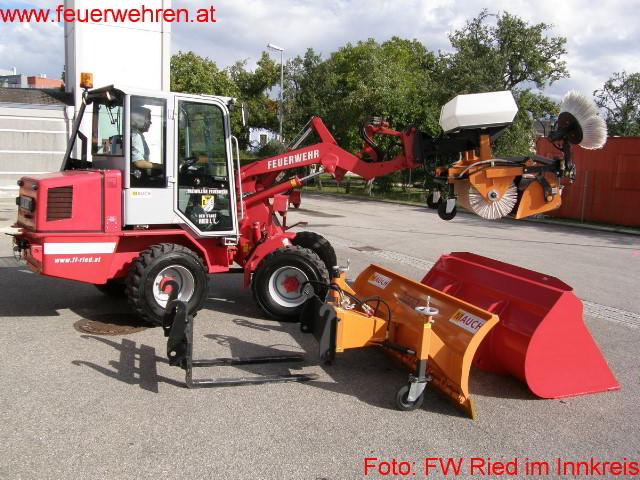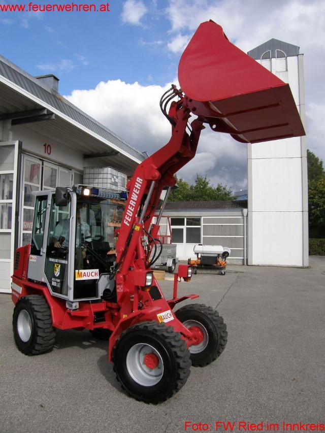 Erst seit heute, dem 04.09.2007, steht der FF Ried i.I. ein Radlader als Einsatzgerät zur Verfügung. Seit fast 10 Jahren wird bei der FF Ried i.I. ein Gabelstapler eingesetzt. In mehreren Einsätzen hat sich aber gezeigt, dass der Gabelstapler abseits von befestigten Fahrbahnen oder leichten Hindernissen auf der Fahrbahn, nicht mehr eingesetzt werden kann. Auch lag das Einsatzspektrum nur bei Hubarbeiten.