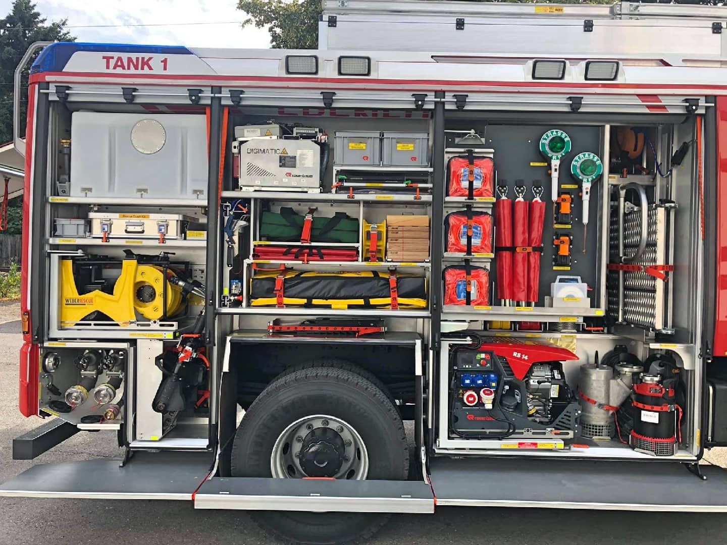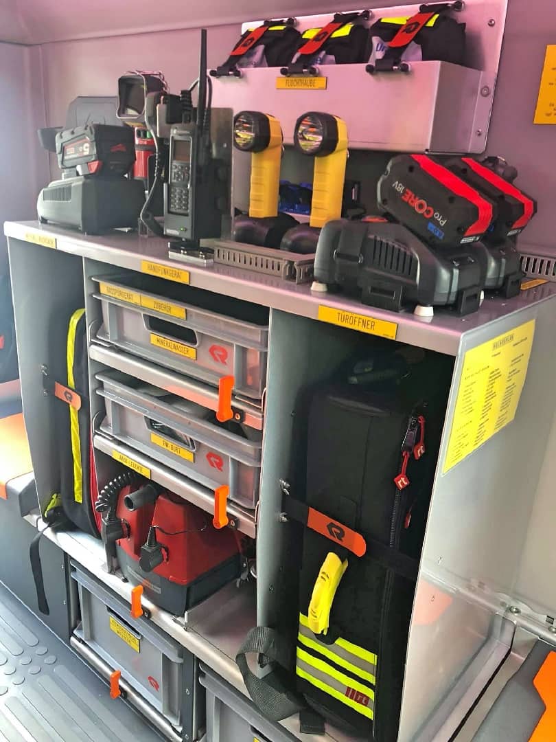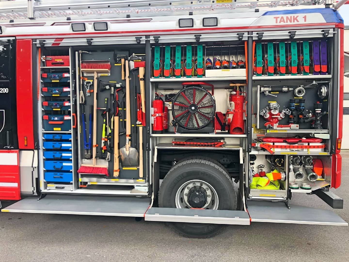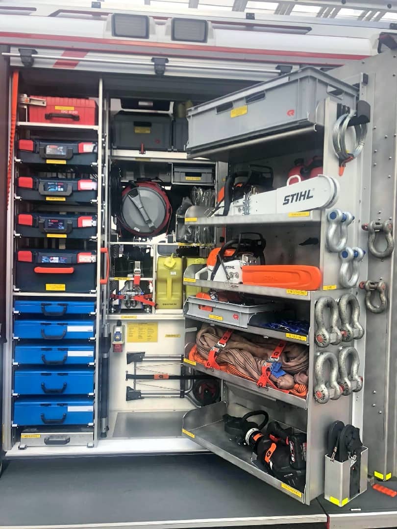 Erste Aufgabe des Fahrzeugausschusses war es die notwendige Ausrüstung, die das HLF beinhalten soll, zu evaluieren sowie Neuheiten auf dem Markt genau unter die Lupe zu nehmen und Erfahrungsberichte darüber einzuholen. Eben hierbei war es besonders wichtig den Fokus auch in Richtung technischer Einsätze zu legen, da das TLFA 4000 fast ausschließlich für Branddiensteinsätze genutzt wurde. So fanden zum Beispiel ein Weber Akkutüröffner, ein vollständiger hydraulischer Rettungssatz, mehrere Hebekissen und noch vieles mehr an technischer Ausrüstung im neuen Fahrzeug Platz. Doch auch die Löschtechnik wurde nicht vernachlässigt. Eine vollautomatische Schaumdruckzumischanlage, die es ermöglicht mit bis zu 0,1% zuzumischen oder auch Schaum über längere Wegstrecken zu befördern, als auch ein von der Fahrerkabine aus steuerbarer Frontwerfer wurden verbaut, um nur einige Details zu nennen.