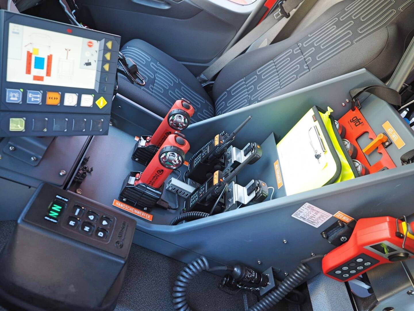 Die Hauptsteuerung des Fahrzeuges und der Pumpe erfolgt über ein zentrales CAN-BUS System (Controller Area Network, einem asynchronen, seriellen Bussystem) mit Bedieneinheiten neben dem Fahrersitz und heckseitig bei dem Pumpenbedienstand. Innovativ ist das Beleuchtungssystem des Fahrzeuges, welches mit energiesparenden LED-Beleuchtungskörpern ausgeführt ist. Diese werden mit der 24V Fahrzeugspannung betrieben und können daher jederzeit ohne Drehstromgenerator in Betrieb genommen werden. Unterboden-, Innenraum-, Umfledbeleuchtung, Lichtmast, Blaulichter und Fahrzeugleuchten sind als LED Beleuchtung ausgeführt. Aber auch die mobilen Lichtstative und mobilen Warnblickleichten sind in mit LED Technologien ausgestattet, dass einerseits eine kabelloses Arbeiten mit Akku und andererseits bei länger andauernden Einsätzen kabelgebunden mit 230V möglich ist.