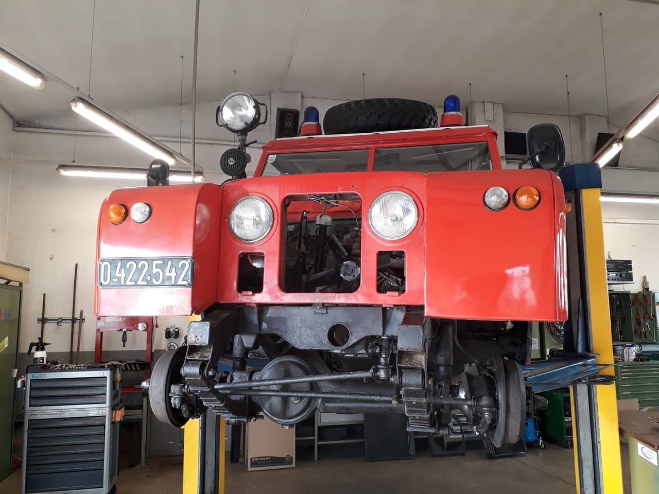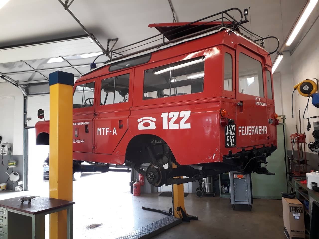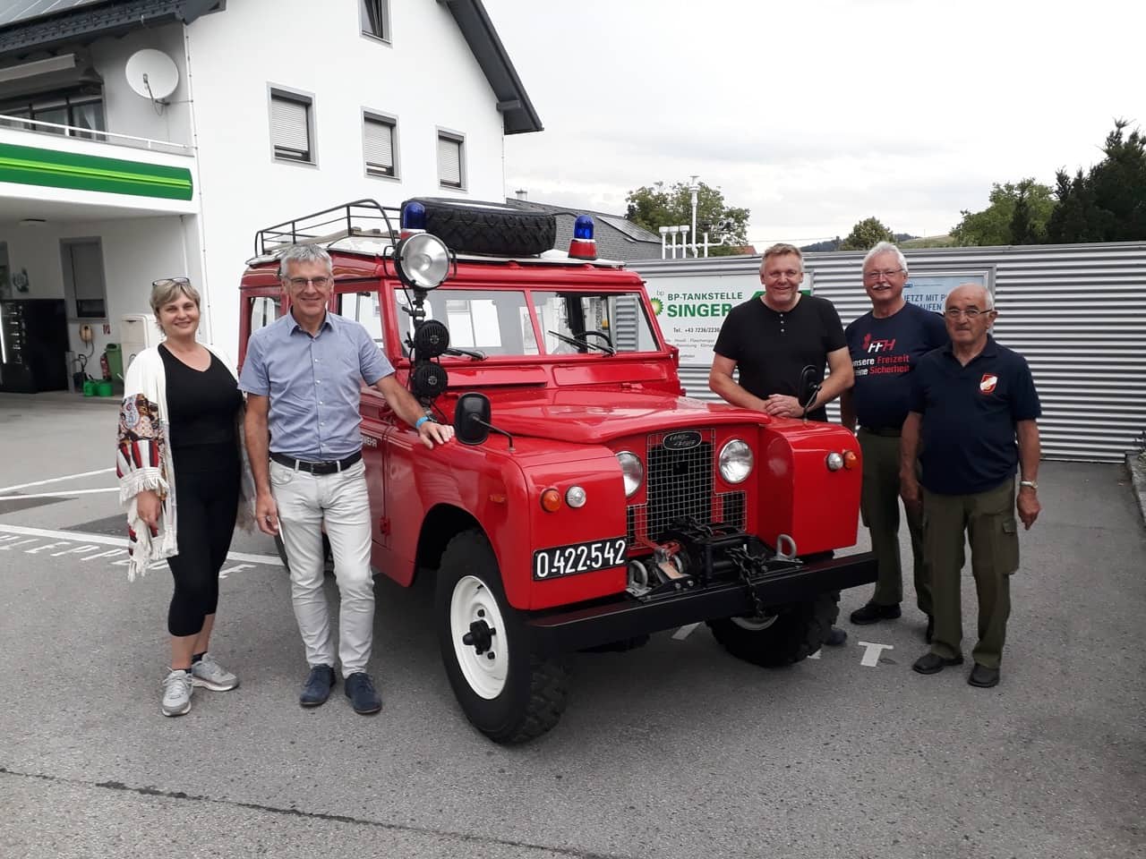 Der Landrover, bis 1999 als Kleinrüstfahrzeug eingesetzt, wird nach wie vor für Mannschaftstransporte verwendet und dient auch als beliebtes Fahrzeug für Feuerwehrhochzeiten. Der Zahn der Zeit nagte aber schon stark an der Substanz des Fahrzeugs, Baujahr 1967, und so wurde es im Herbst 2020 in die Hände von Jürgen Singer und Václav Mařík, zwei echten Landrover-Liebhabern, gegeben. Die Beiden brachten den „Rover“, wie er unter den Feuerwehrkameraden genannt wird, in mehr als 250 Arbeitsstunden wieder auf Vordermann. Nun erstrahlt dieser besonders gehütete „Schatz“ der Feuerwehr Hagenberg wieder in neuem Glanz!