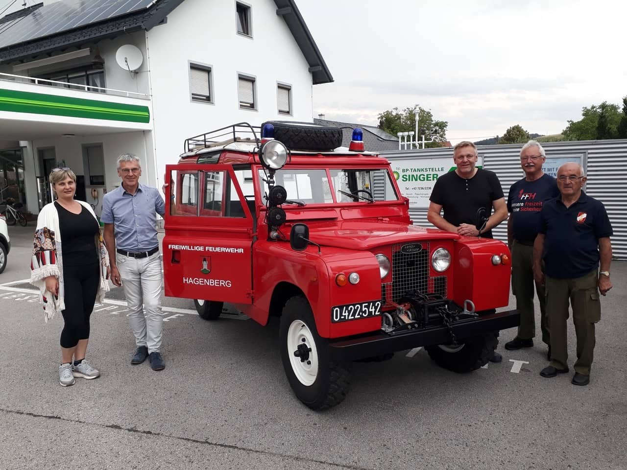 Nur zwei Wochen nach der Ankunft des neuen Rüstlöschfahrzeugs durften die Hagenberger Feuerwehrkamerden wieder ein neues (altes) Feuerwehrfahrzeug begrüßen. Nach sechsmonatiger Restauration kehrte der Landrover-Oldtimer wieder ins Feuerwehrhaus zurück.