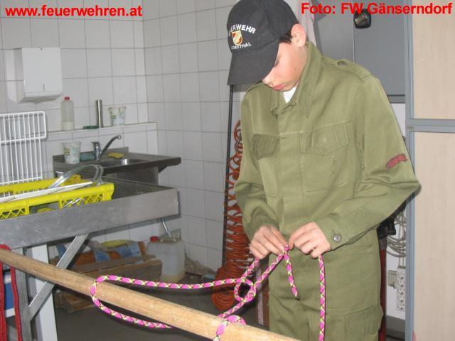 Der Wissenstest der Feuerwehrjugend des Bezirks fand heuer in der Feuerwehrzentrale Gänserndorf statt. Neben der theoretischen Prüfung wurde auch das Fachwissen an diversen Gerätestationen geprüft. Hier musste man Geräte für den Feuerwehrdienst erklären, Dienstgrade der Feuerwehr erkennen und diverse Leinen/Knoten fertigen.