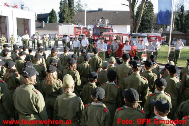 Die Freiwilligen Feuerwehren des Bezirkes Gmunden erkennen nach wie vor die Wichtigkeit der Bemühungen um den Feuerwehrnachwuchs. Im gesamten Bezirk Gmunden werden in jeder der 20 Gemeinden eine oder mehrere Jugendgruppen geführt. Derzeit bestehen im gesamten Bezirk bei 42 Feuerwehren insgesamt 48 Jugendgruppen. Der äußerst erfreuliche Mitgliederstand beträgt zur Zeit 490 Jungfeuerwehrmitglieder. Der Anteil an Mädchen ist auf 38 (7,75%) gestiegen. Der gewaltige Zeitaufwand für die feuerwehrspezifische Ausbildung und für die allgemeine Jugendarbeit während eines gesamten Jahres betrug allein im Vorjahr 64.171 (!) Stunden , die von den in eigenen Ausbildungsseminaren geschulten Jugendbetreuern bzw. Jugendhelfern, zusätzlich zum normalen und alltäglichen Feuerwehrdienst, aufgewendet wurden. So werden die Jugendlichen nicht nur auf ihren zukünftigen Feuerwehrdienst vorbereitet, sondern erleben auch in der Gruppe soziale Werthaltungen wie Teamgeist, Vertrauen, Verlässlichkeit und Kameradschaft.