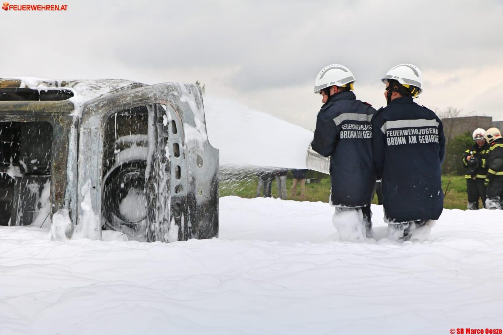Eine nicht alltägliche Übung stand am 28.04.2017 bei der Feuerwehrjugend Brunn am Gebirge am Ausbildungsplan. Bei nicht optimalem Wetter aber dafür umso mehr Action galt es für die jugendlichen Mädchen und Burschen einen Fahrzeugbrand auf einem Übungsgelände zu bekämpfen.