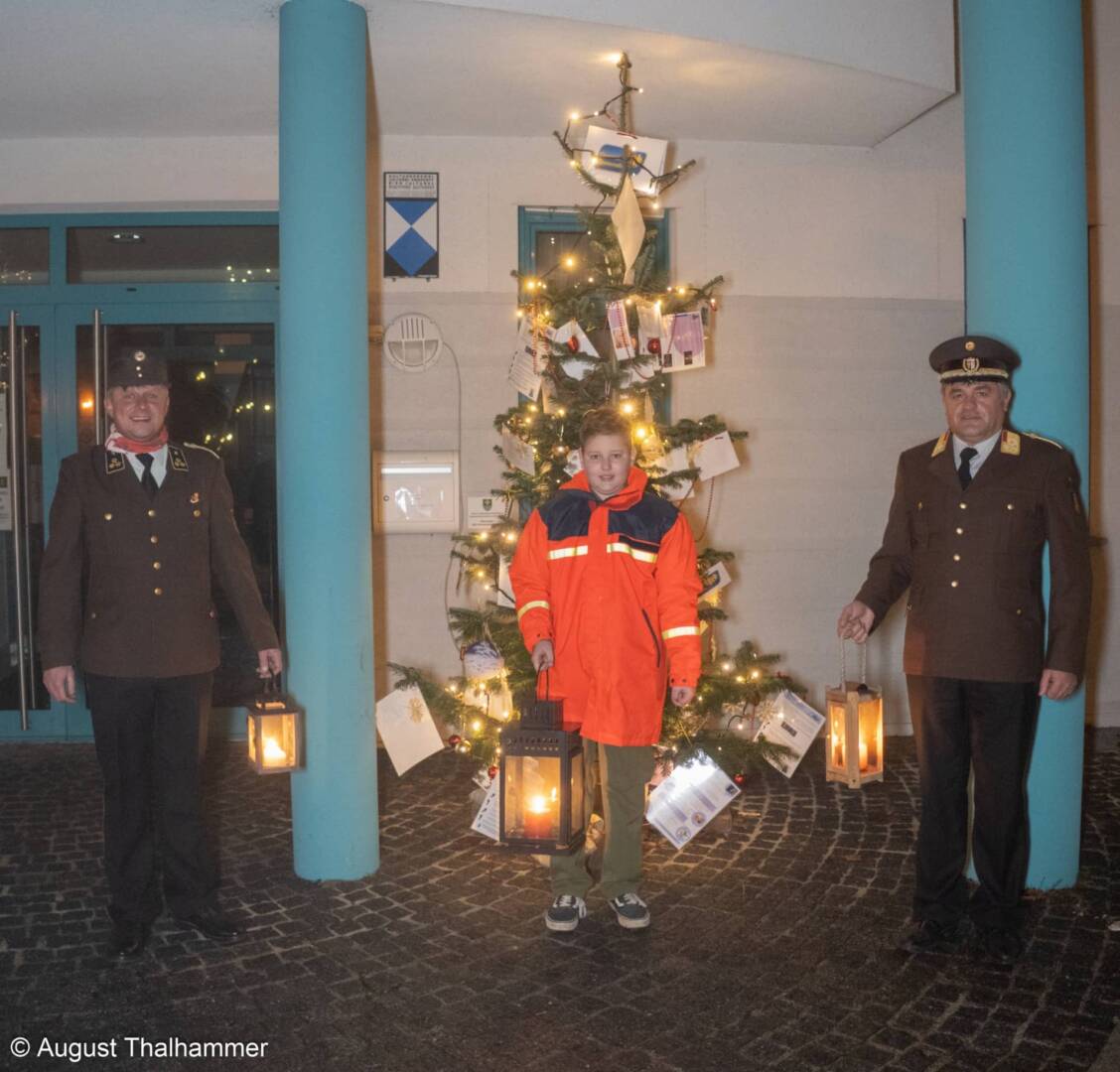 Das Jugendfeuerwehrmitglied Jonas Gebetsroither der Freiwilligen Feuerwehr Weyregg am Attersee durfte heuer das Friedenslicht am 17.12.2020 für den Bezirk Vöcklabruck in Sankt Florian in Empfang nehmen.