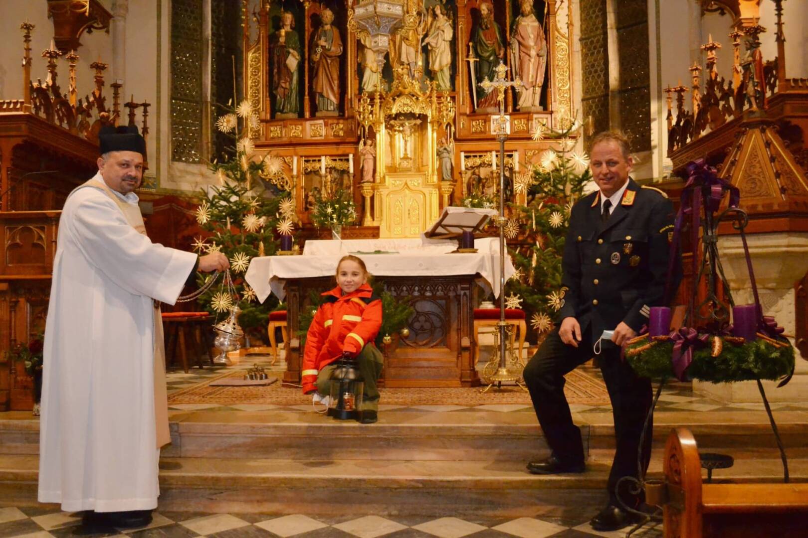 Von Althofen aus wurden die vier jungen Florianis aus den FF-Abschnitten von Bezirksfeuerwehrkurat Dechant Lawrence Pinto als „Boten dieses Lichtes und des Friedens“ entsendet.