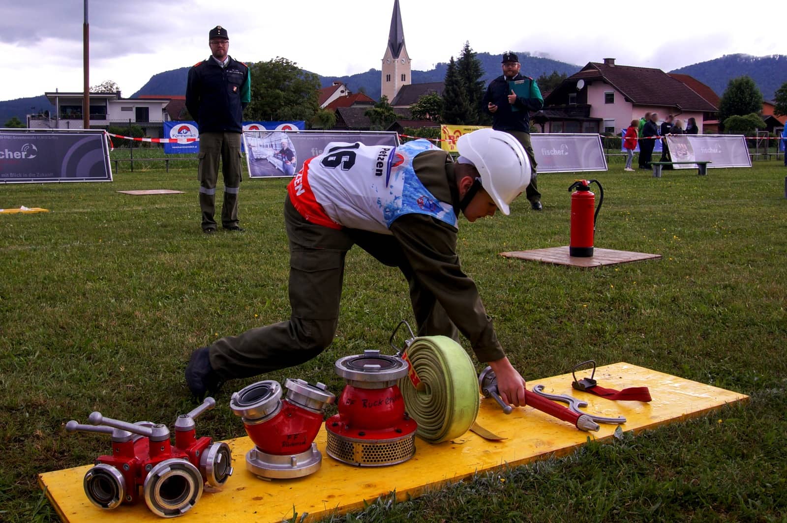 Wie hervorragend die Nachwuchsarbeiten in den Feuerwehren funktionieren, konnte auch bei regnerischem Wetter bei den einzelnen Bewerben aus den Bezirken Völkermarkt, Wolfsberg, Klagenfurt Land und Villach Land unter Beweis gestellt werden. Von den Bewertern wurde dabei besonders auf die Schnelligkeit und natürlich das richtige Arbeiten der Jugendlichen geachtet.