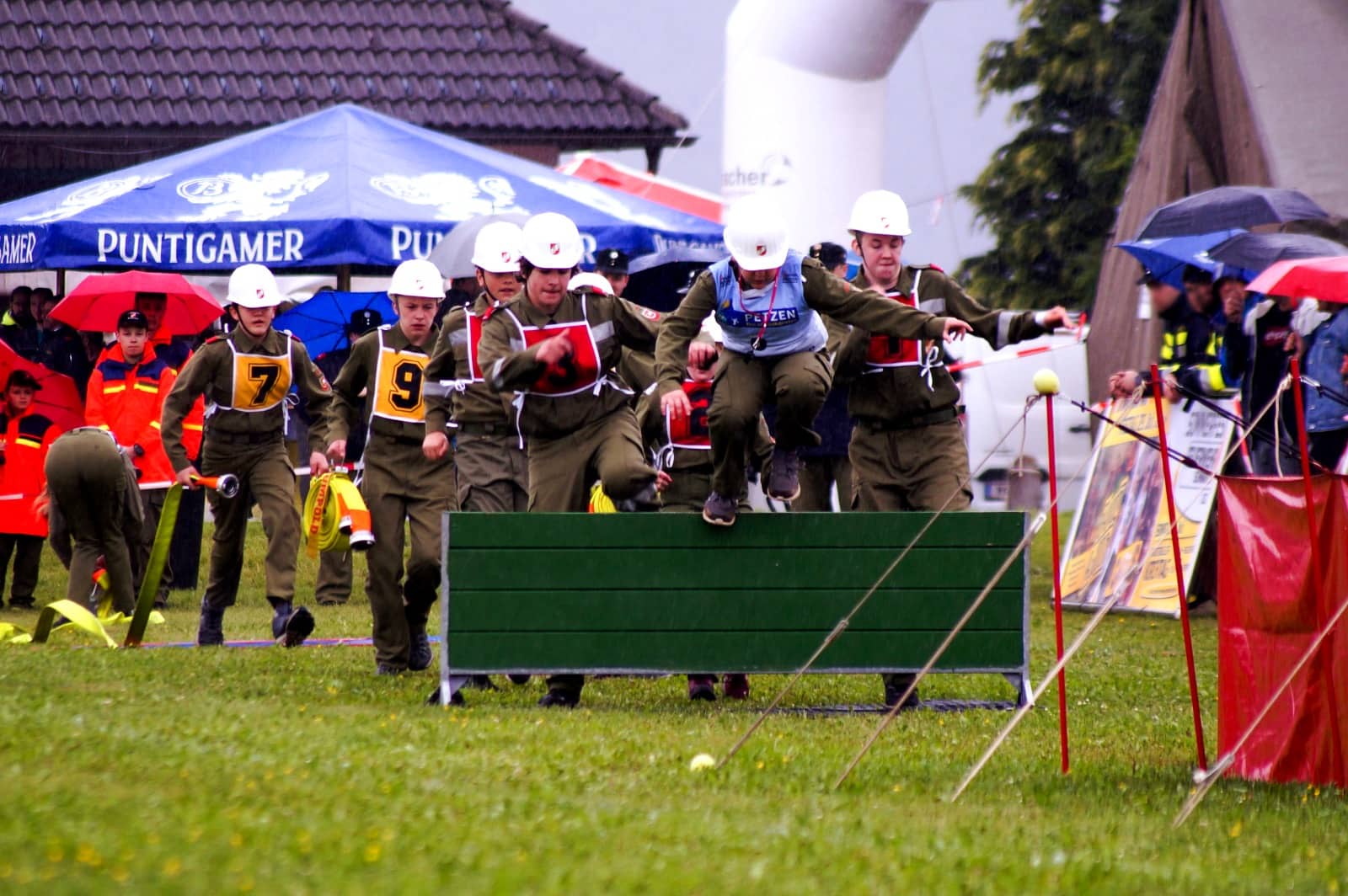 In einer Hindernisübung müssen die Kinder und Jugendlichen unter anderem Hürden, Kriechtunnel und einen fiktiven Wassergraben überwinden und mit einer Kübelspritze einen Löschangriff simulieren. Im Gruppenbewerb müssen die neun Jugendmitglieder danach einen 400-Meter-Staffellauf mit verschiedenen Hindernissen absolvieren.
