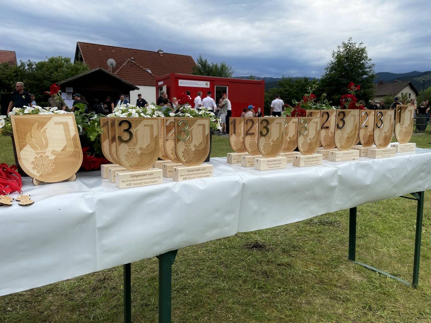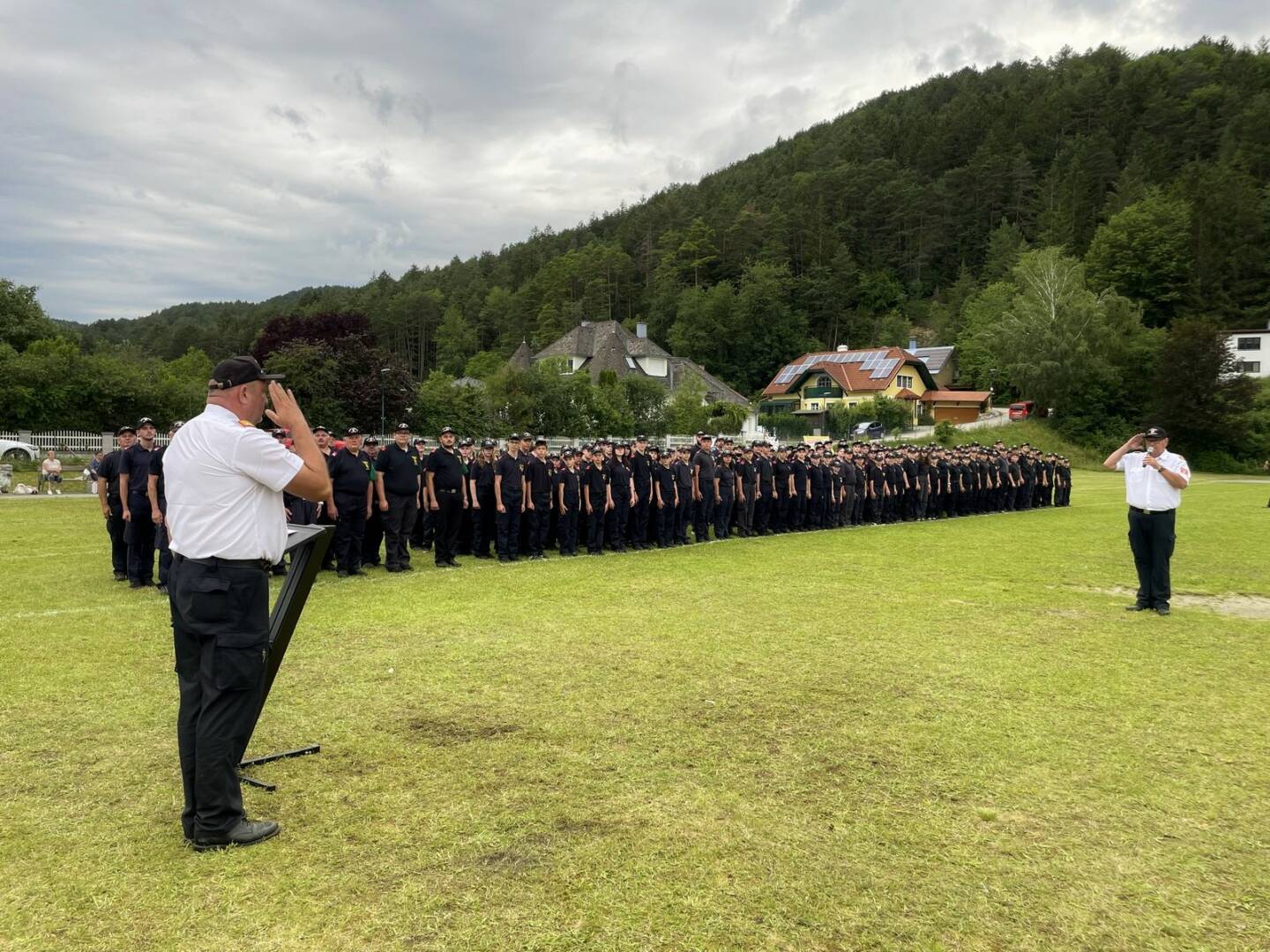 Zur Siegerehrung ließ Platzsprecher Thomas Huber die Jugendgruppen der Feuerwehren einlaufen. Bei dieser konnte Bezirkskommandant OBR Karl-Heinz Greiner zahlreiche Ehrengäste begrüßen, darunter die Abgeordnete zum Nationalrat Irene Neumann-Hartberger, Bezirkshauptmann WHR Markus Sauer, den Bürgermeister der Marktgemeinde Pernitz Hubert Postiasi sowie die anwesende Bürgermeisterin Katharina Trettler (Waldegg) und Bürgermeister Wolfgang Stückler (Miesenbach). Für die Funktionäre begrüßte er seinen Stellvertreter BR Norbert Schmidtberger, die Abschnittskommandanten BR Hermann Gamsjäger, BR Markus Schüttner, BR Roland Kleisz und BR Michael Lechner und die Stellvertreter ABI Harald Neumann und ABI Wolfgang Pürrer. Weiters konnte er die Mitglieder des Feuerwehrmedizinischen Dienstes begrüßen.