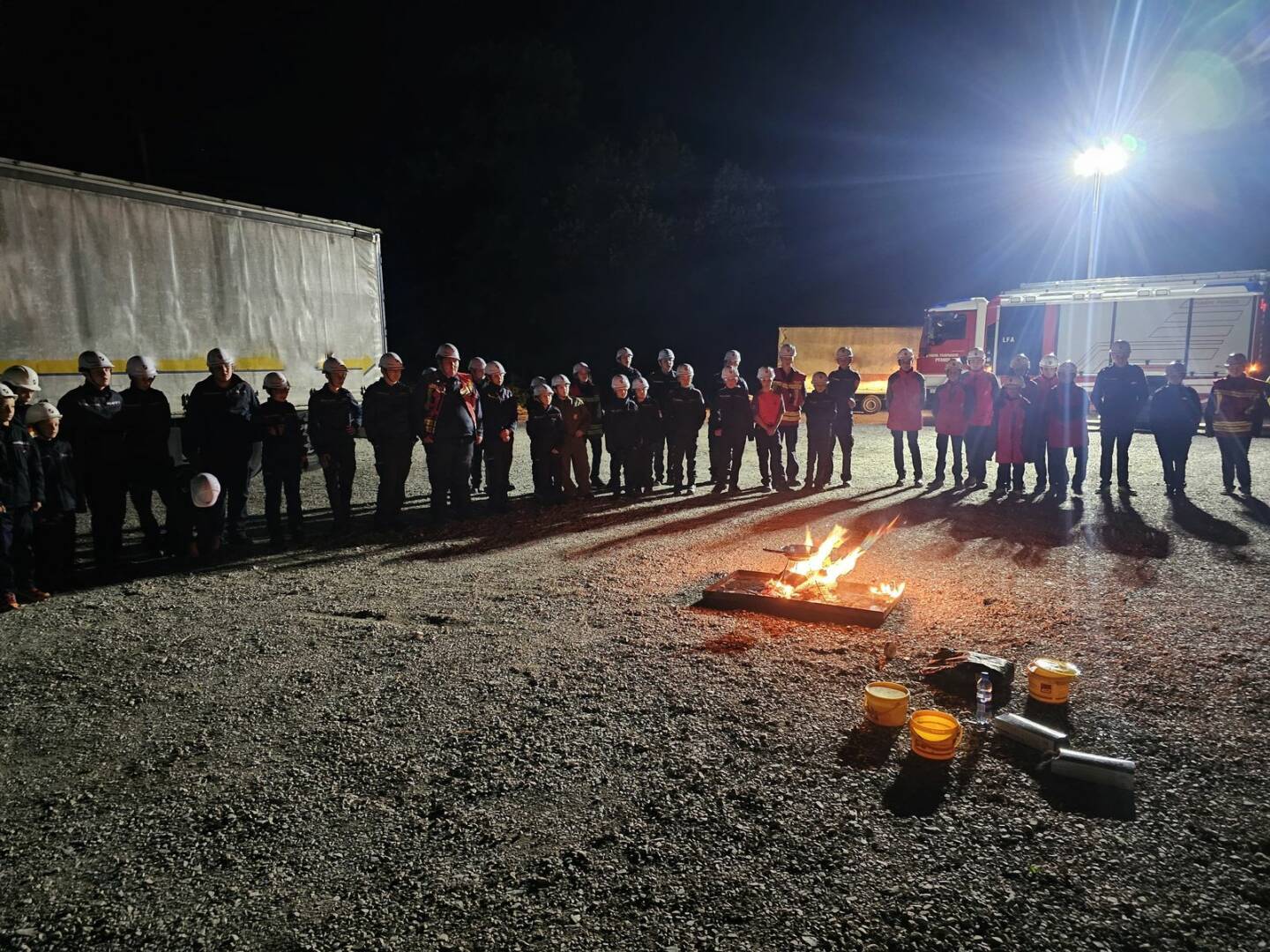 Am Freitag startete um 14:00 Uhr die Übung mit einem Waldbrand beim Salzbergwerk in Perneck. Im Laufe der folgenden 24-Stunden folgten viele weitere Gemeinschafts- und Einzelübungen der Einheiten. Die Höhepunkte waren sicherlich: die gefährliche Stoffe Übung, bei welchem ein Behälter auf einem Anhänger abgedichtet werden musste. Gleichzeitig hatte man dafür zu sorgen, dass die Flüssigkeiten nicht in das Kanalnetz gelangen. Heiß herging es in der Pfandler Schottergrube, wo verschiedene Brandversuche durchgeführt wurden. Und ganz besonders waren heuer auch die Spiele zum Thema „Wassertransport der anderen Art“, bei welchem die Jugendlichen aller Gruppen zu Teams, je fünf Mitglieder, zusammengelost wurden.