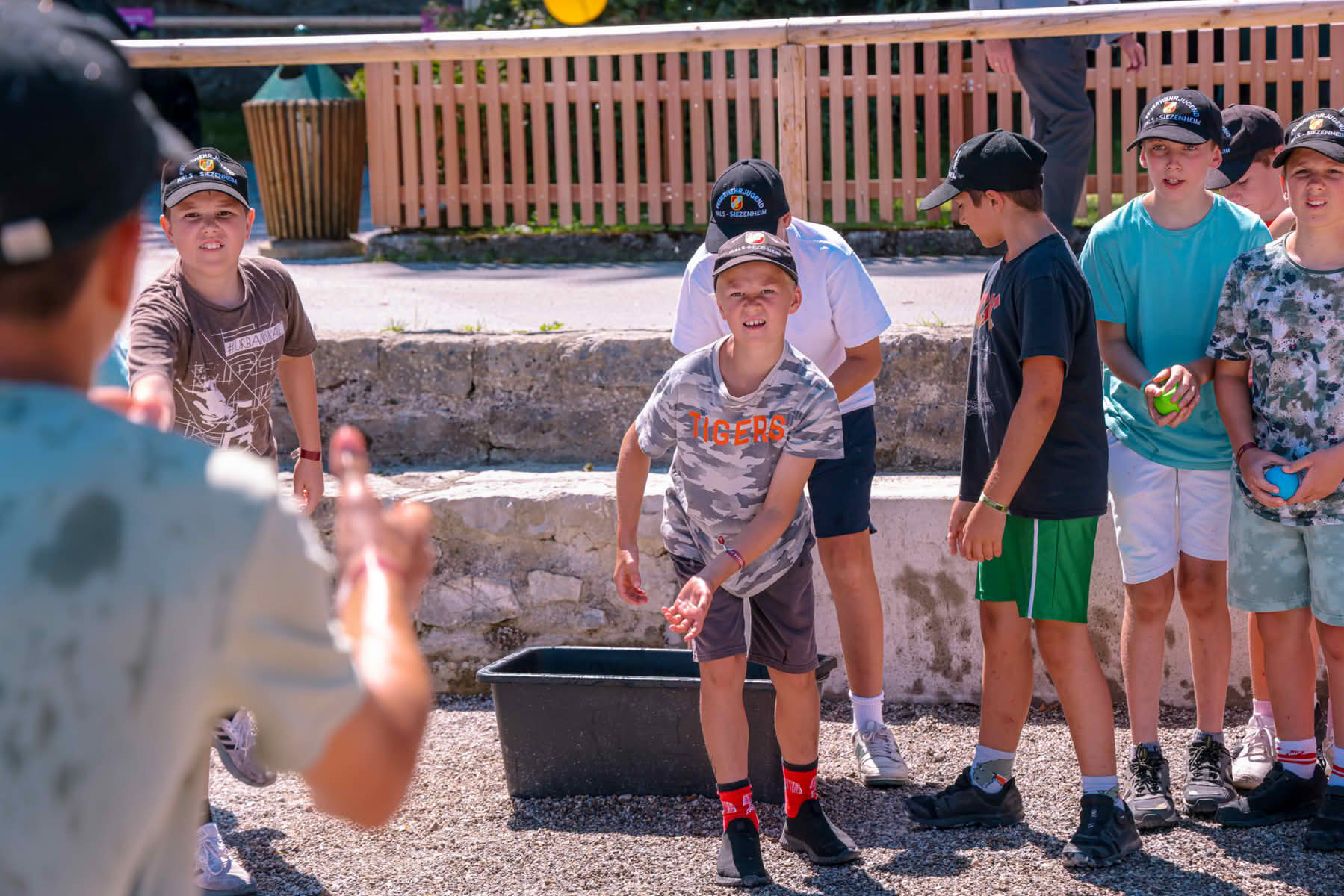 Am Samstagvormittag absolvierten die Jugendlichen bei hochsommerlichem Wetter mehrere Stationen im gesamten Gemeindegebiet von Mattsee. Oldtimer ziehen, Gewichte schätzen, Getränkekisten stapeln oder Basketball werfen – das waren nur vier von insgesamt neun Stationen, die im Team erfolgreich gemeistert werden mussten. Das Ziel war klar: möglichst viele Punkte sammeln und den ersten Platz erreichen!