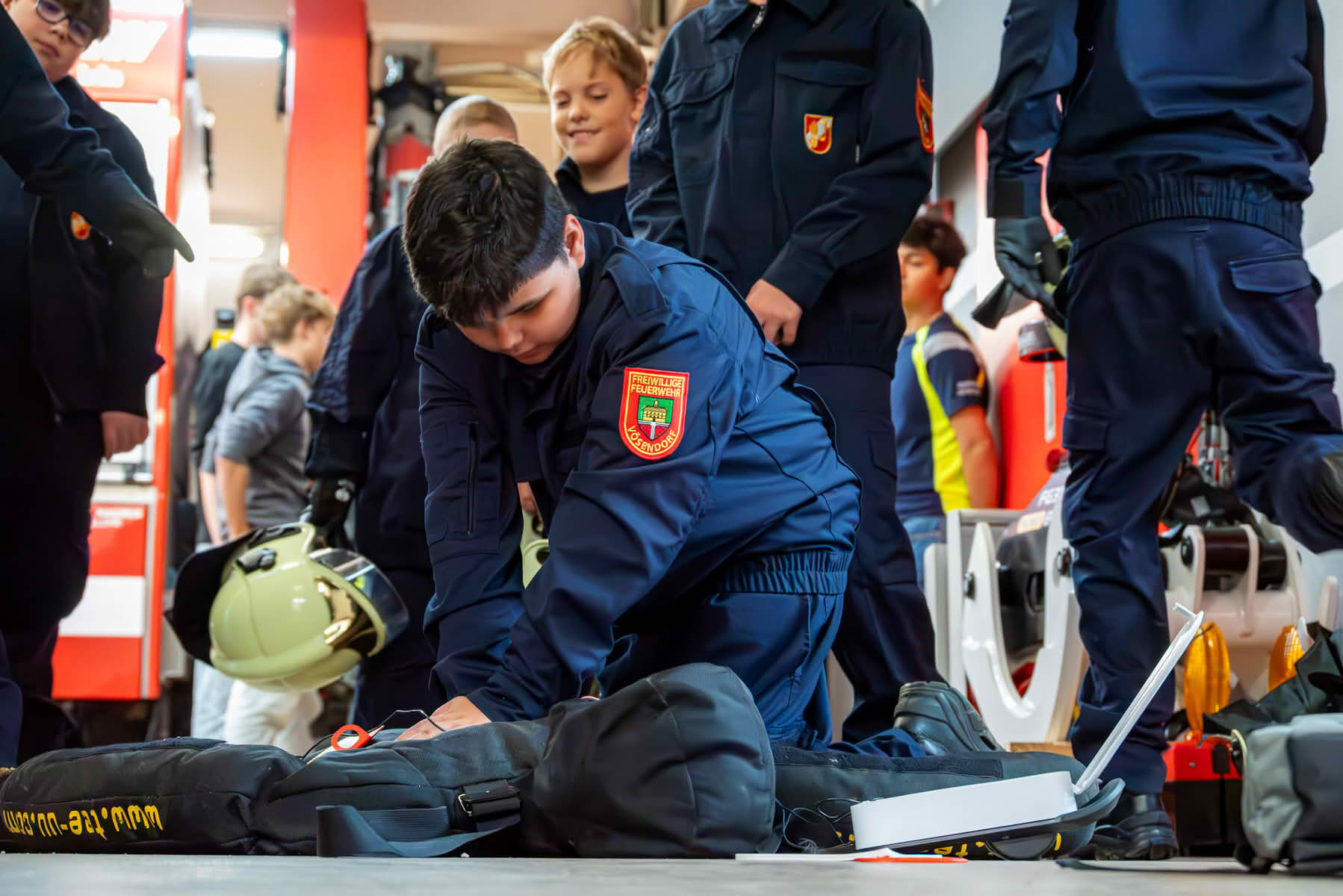 In der Nacht wurden die Jugendlichen zu einer Brandmeldeauslösung im Feuerwehrhaus geweckt, ehe der nächste Tag mit einer Unterrichtseinheit zum Thema Menschenrettung aus einem PKW begann. Dabei wurde den Jugendlichen das Vorgehen bei einer Personenrettung aus einem Fahrzeug gezeigt, sowie verschiedene Methoden und Schnitttechniken mit dem hydraulischen Rettungsgerät praktisch angewendet. Als letzter Einsatz musste eine hilflose Person aus einem Bachbett gerettet werden. Mithilfe der Teleskopmastbühne wurde eine Schleifkorbtrage abgelassen, mit der die verunfallte Person schonend in Sicherheit gebracht wurde.