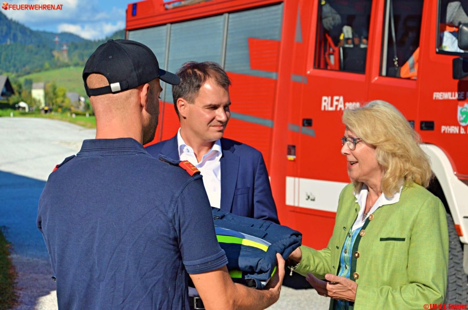 Im Rahmen des Besuches weiterer Veranstaltungen im obersteirischen Raum nutzte der steirische Feuerwehrreferent Landeshauptmann-Stv. Mag. Michael Schickhofer am Donnerstag, den 20. September, die Möglichkeit, die kürzlich neu angeschafften Einsatzbekleidungen persönlich an die Freiwillige Feuerwehr Pyhrn b. Liezen zu überreichen.