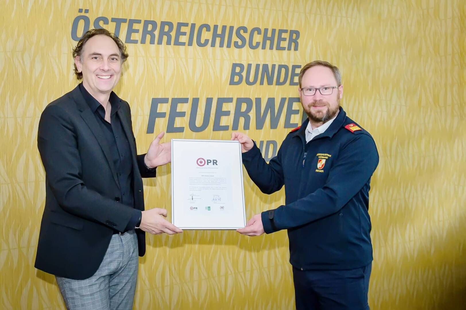 Ausgezeichnet - ÖBFV ist Träger des Österreichischen PR-Gütezeichens; Christian Krpoun, Geschäftsführer Österreichisches PR-Gütezeichen (links) & Andreas Rieger, Geschäftsführer ÖBFV Medien GmbH (rechts) bei der Zertifikatsübergabe; Christian Krpoun, Geschäftsführer Österreichisches PR-Gütezeichen (links) & Andreas Rieger, Geschäftsführer ÖBFV Medien GmbH (rechts) bei der Zertifikatsübergabe | © Marko’s Photography