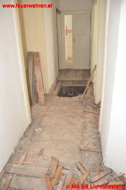 Die betroffenen Wohnungen wurden von der Feuerwehr evakuiert, die Decke gepölzt und die Öffnung provisorisch verschlossen.