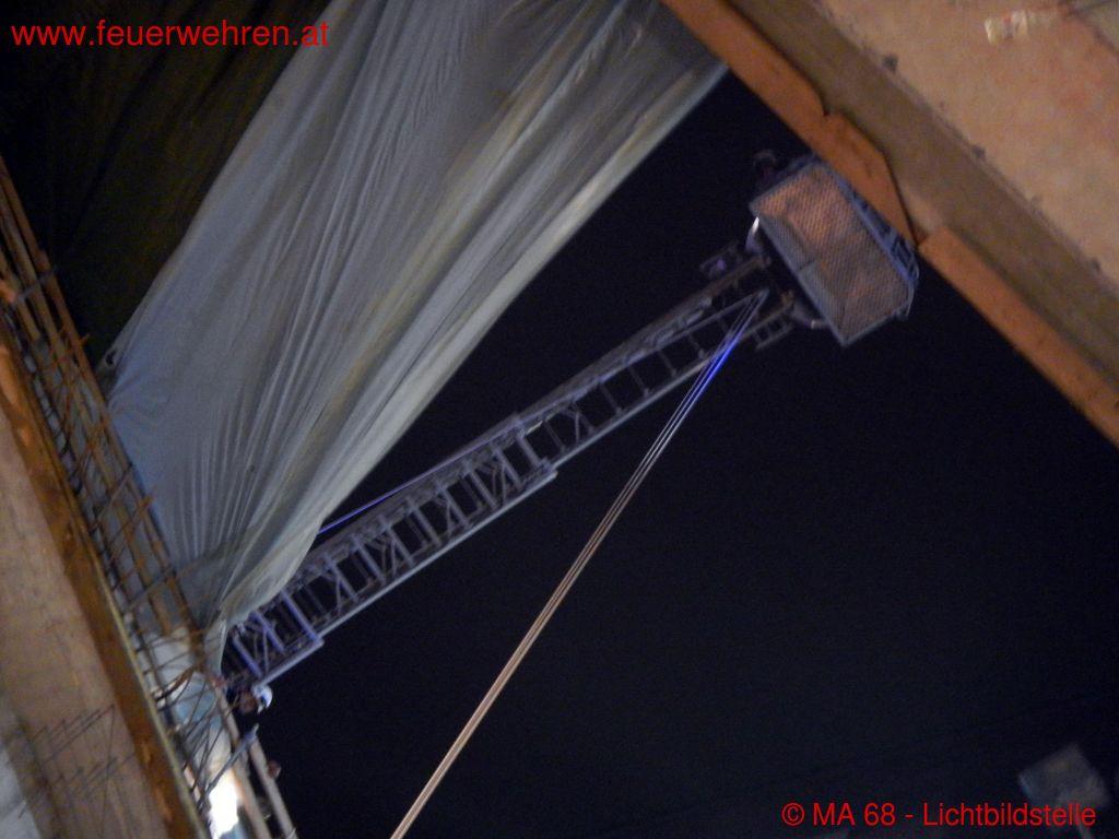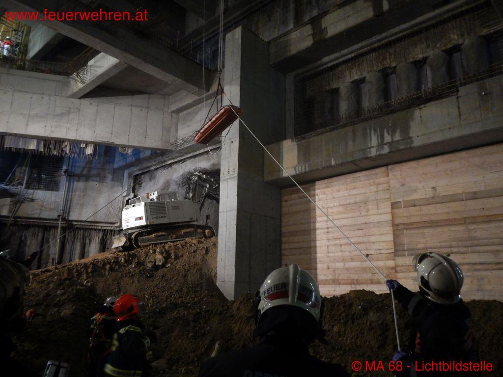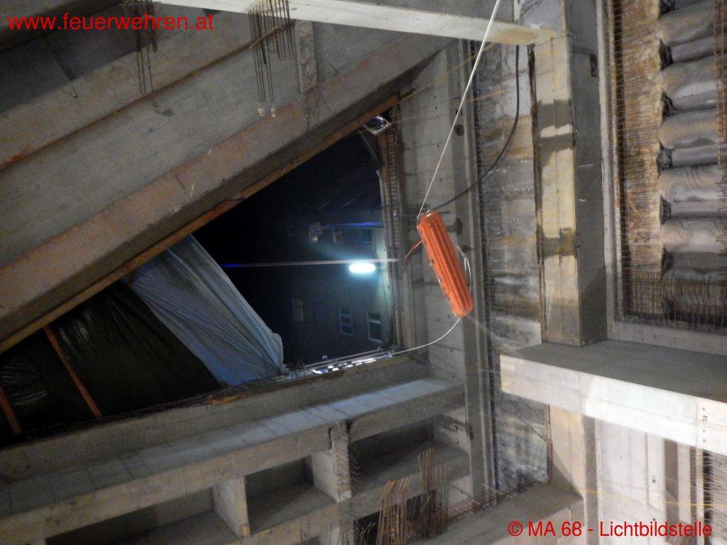 Während der Versorgung durch die Rettung wurde parallel von der Berufsfeuerwehr Wien unterstützt durch unsere Feuerwehrhöhenrettungsgruppe die schonende Patientenbergung vorbereitet.