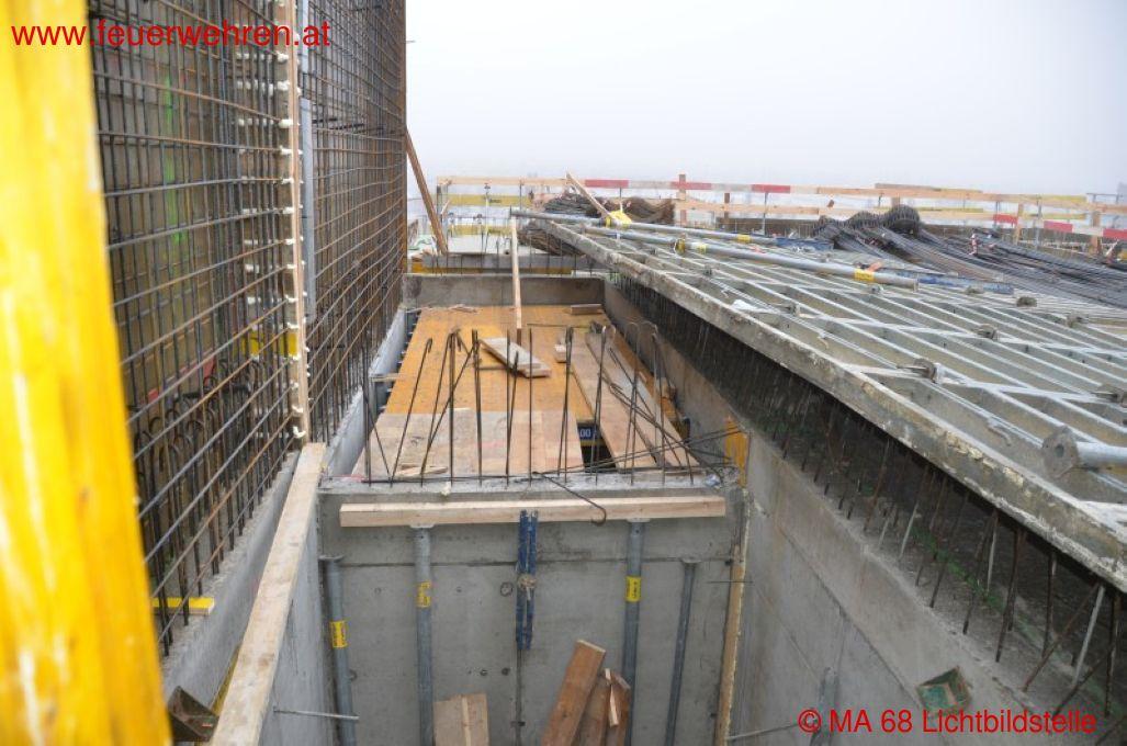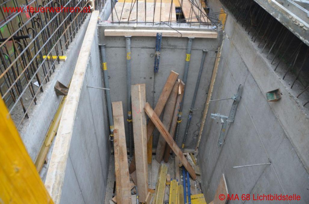 Um zu dem Verletzten vordringen zu können war es notwendig, dass die Einsatzkräfte einen Bereich über einen provisorisch errichteten Bodenbelag aus Holz überqueren. Als sie sich darauf befanden, gab dieser aus bisher unbekannter Ursache nach und sechs Einsatzkräfte der Berufsfeuerwehr Wien stürzten samt der Holzkonstruktion etwa 4,5 Meter in die Tiefe.