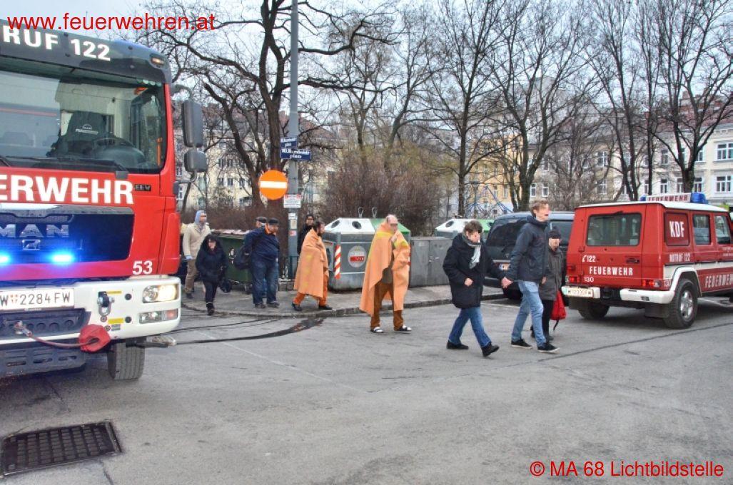 Noch vor dem Eintreffen der ersten Einsatzkräfte wurde die Evakuierung durch das Betreuungspersonal eingeleitet. Auf Grund der großen Anzahl an Personen (etwa 70) im Gebäude wurde seitens der Berufsfeuerwehr Wien Alarmstufe zwei ausgelöst und der K-Zug der Berufsrettung Wien alarmiert. Die Evakuierung wurde durch die Feuerwehr schließlich unterstützt und abgeschlossen. Die betroffenen Räumlichkeiten wurden unter Atemschutz begangen und kontrolliert.
