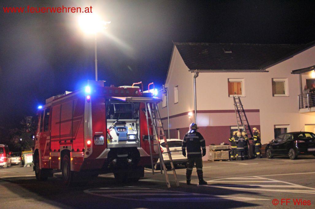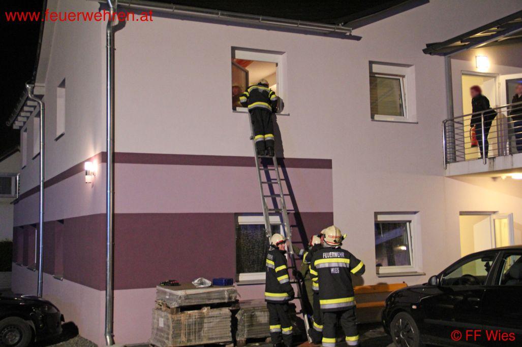 Gegen 20.30 Uhr wurde die Freiwillige Feuerwehr Wies per stillem Alarm zum Einsatz gerufen. Über einen rasch errichteten Leiterweg gelang es zu einem gekippten Fenster vorzudringen und zum Kind, welches tapfer in der Wohnung die Stellung hielt, Kontakt aufzunehmen. Zwei Kameraden stiegen dann über das Fenster in die Wohnung und öffneten die Eingangstüre, sodass die Mutter ihr Kind wieder in die Arme schließen konnte.