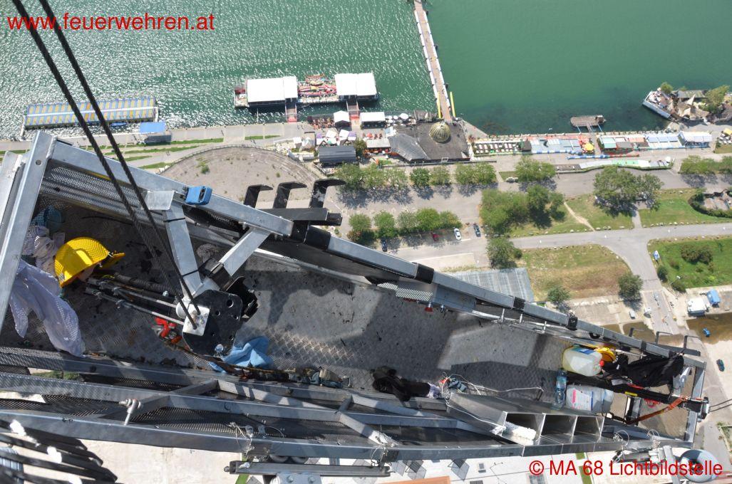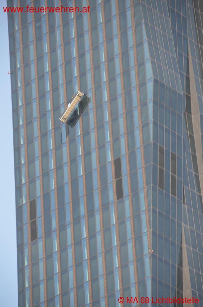 Aus bislang ungeklärter Ursache war während Fensterreinigungsarbeiten im 48. Stockwerk (ca. 144 m) eine Fassadengondel einseitig abgerutscht und in Schräglage geraten. Dadurch wurden zwei Arbeiter in der fahruntüchtigen Gondel eingeschlossen.