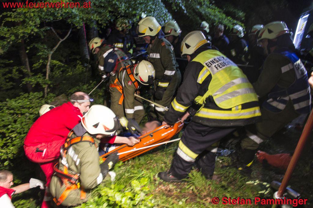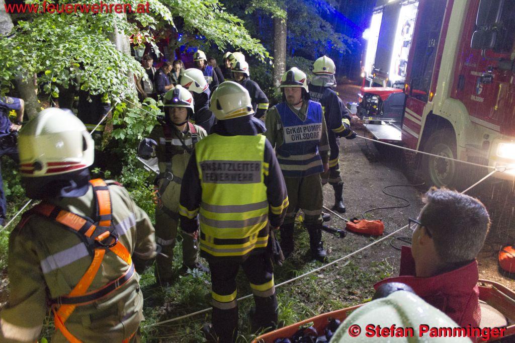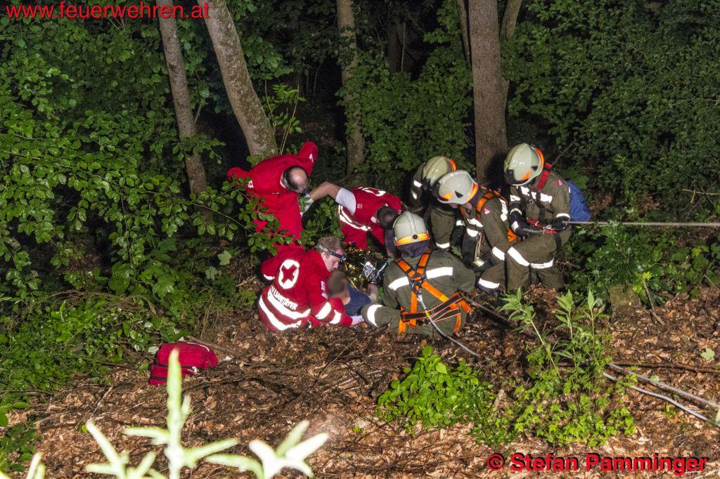Bekannte alarmierten sofort das Rote-Kreuz, welches zur Unterstützung die Feuerwehr Ohlsdorf alarmierte. Am Einsatzort wurde durch Einsatzleiter OBI Peter Schernberger sofort eine Beleuchtung aufgebaut und ein Mann zum Verunfallten abgeseilt. Ein Sanitäter stieg bereits vorab zum Verunfallten ab. Da der Verunfallte verletzt war, wurde eine Sicherungsleine für den eintreffenden Notarzt vorbereitet, ebenso die Schleifkorbtrage.