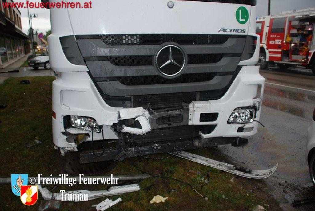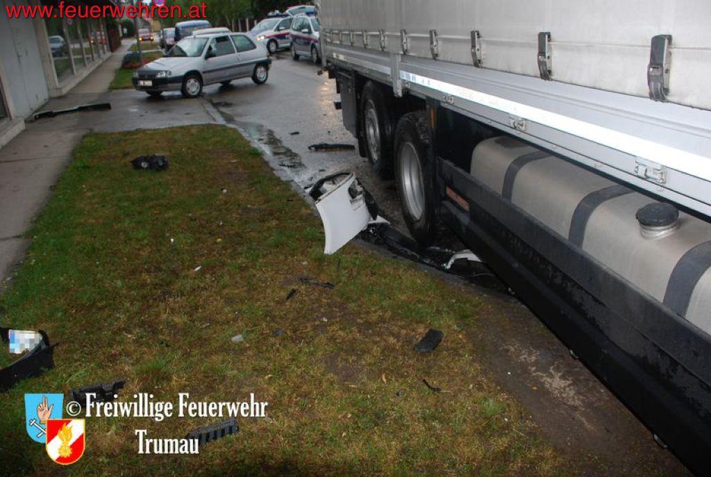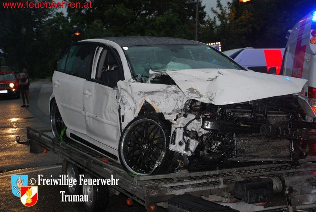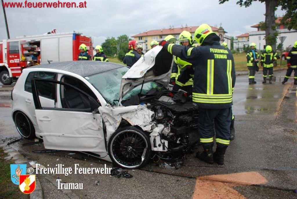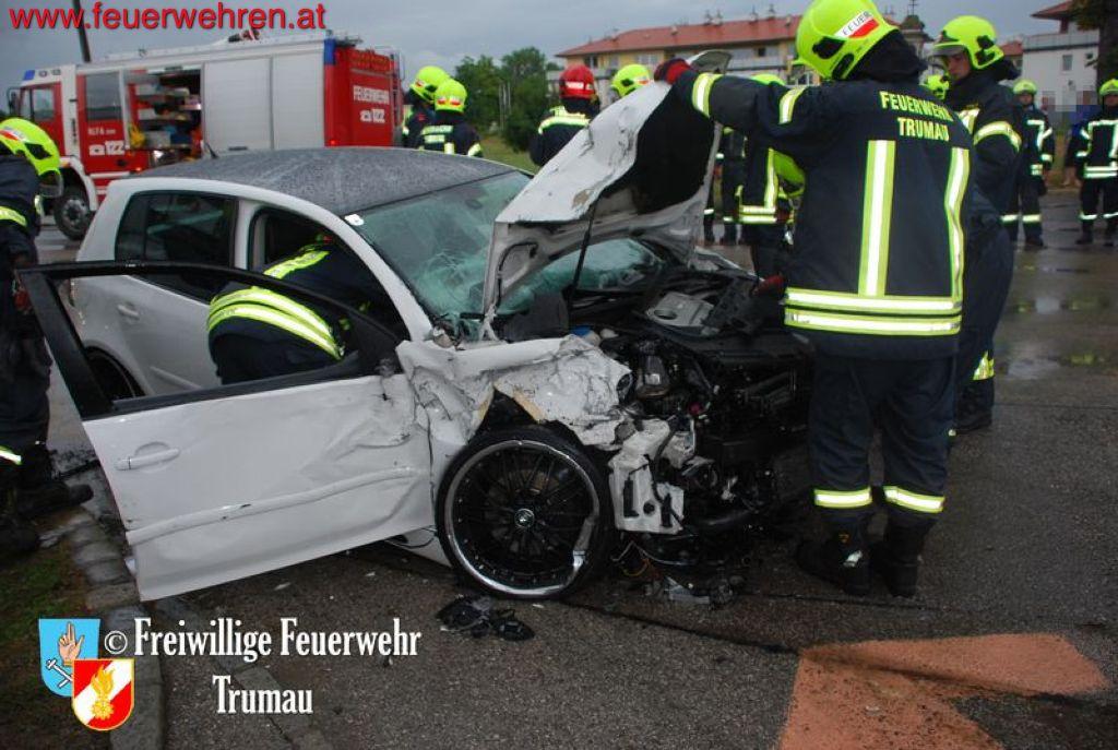 Der Fahrer des PKW’s brach sich den linken Fuß und seine schwangere Beifahrerin erlitt schwere Kopf- und Armverletzungen. Das Kind auf dem Rücksitz erlitt zum Glück nur leichte Prellungen. Durch das gleichzeitige Eintreffen von drei Ärzten der Feuerwehr Trumau konnten die Unfallopfer rasch bis zum Erscheinen der Rettungs- und Notarztwägen behandelt werden. Der LKW Fahrer kam glücklicherweise nur mit dem Schock davon.