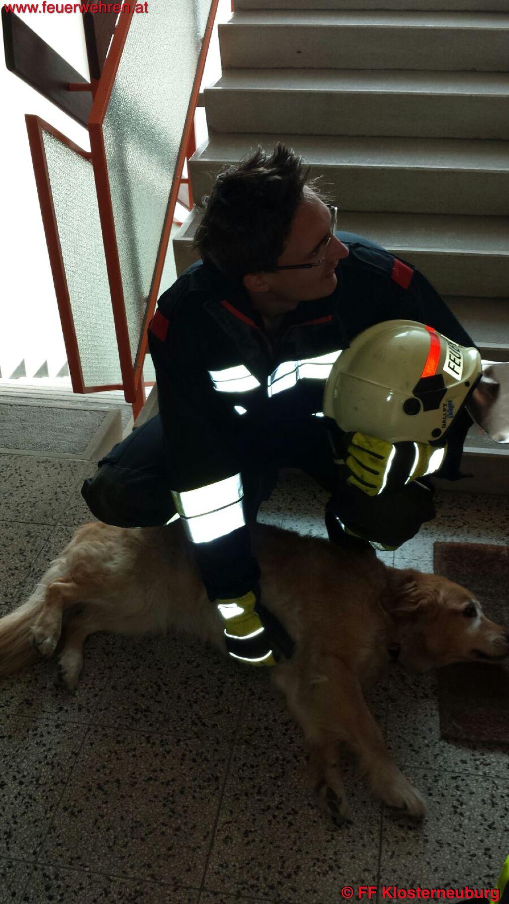 Die Feuerwehrmitglieder staunten nicht schlecht, als sie versuchten sich Zugang zur Wohnung zu verschaffen. Anstatt des Bewohners kam ihnen ein Hund entgegen. Das Herrchen überhörte die lauten Geräusche an der Tür und schlief weiter. Nachdem sich der Hund ein paar Streicheleinheiten von den Einsatzkräften abgeholt hatte und der Bewohner dann doch aufgeweckt wurde, konnte man ihm die Situation erklären und den Einsatz beenden.