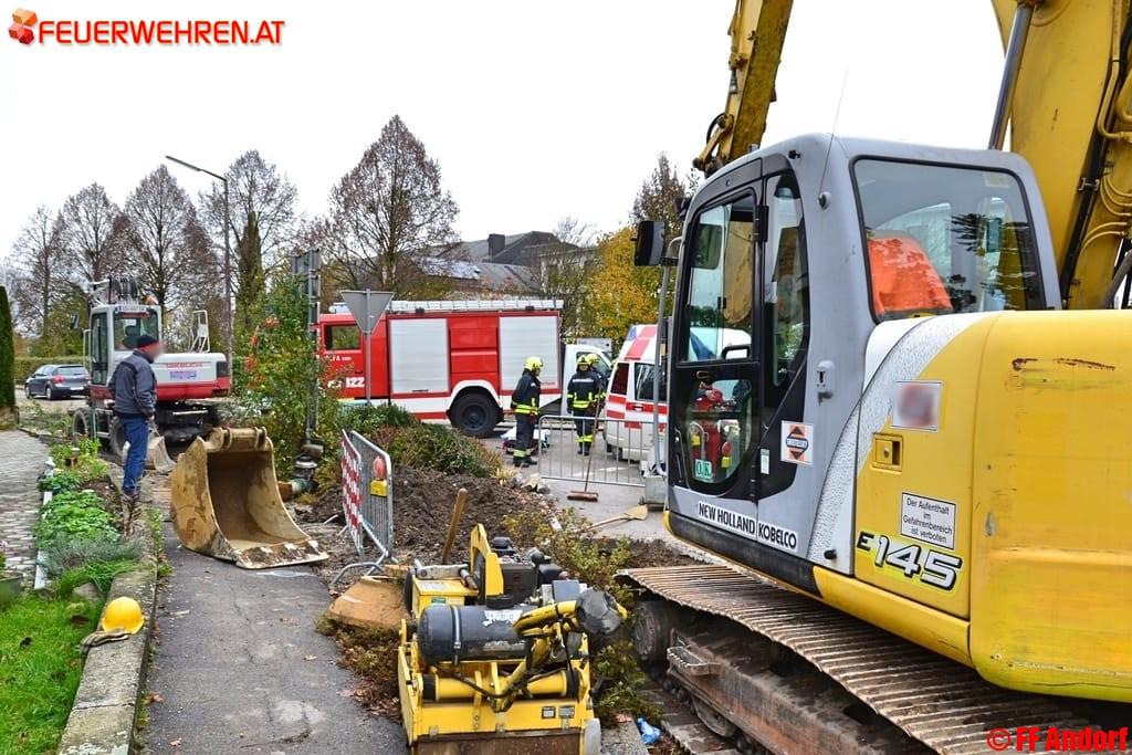 Bei Kanalgrabungsarbeiten im Ortsgebiet von Andorf wurde ein 50-jähriger Arbeiter aus Riedau in der Künette von der Baggerschaufel eingeklemmt und deshalb die Feuerwehr Andorf alarmiert.