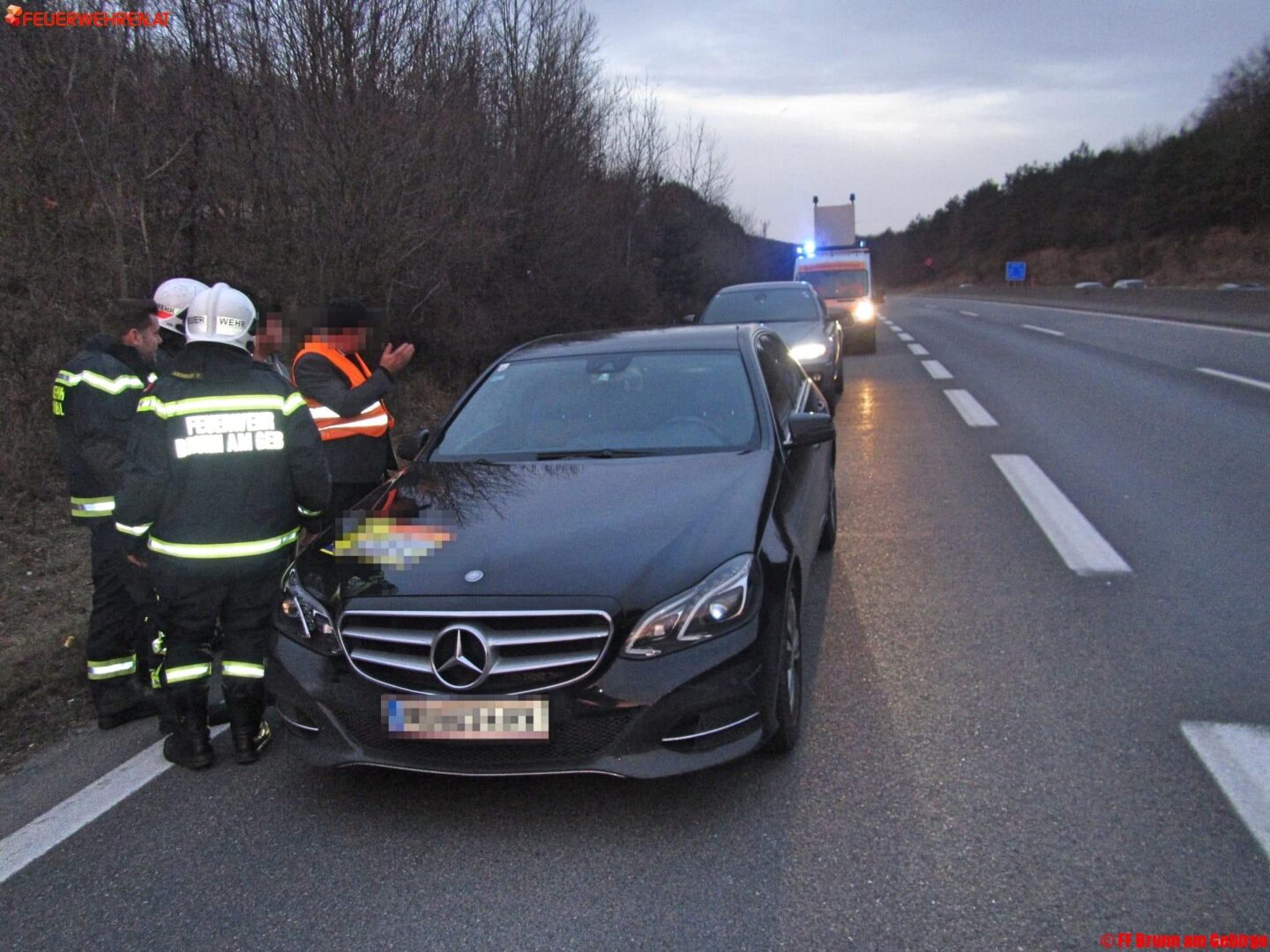 Noch während der Lagebesprechung mit der Perchtoldsdorfer Einsatzleitung wurde der Gruppenkommandant von Tank 1 Brunn vom Disponenten der Bezirksalarmzentrale Mödling über einen PKW-Brand auf der A21 informiert. Da ein Eingreifen der FF Brunn in der Brunnergasse nicht mehr notwendig war, machten sich alle eingesetzten Kräfte, gemeinsam mit der Freiwilligen Feuerwehr Gießhübl, unverzüglich auf den Weg Richtung Autobahn.