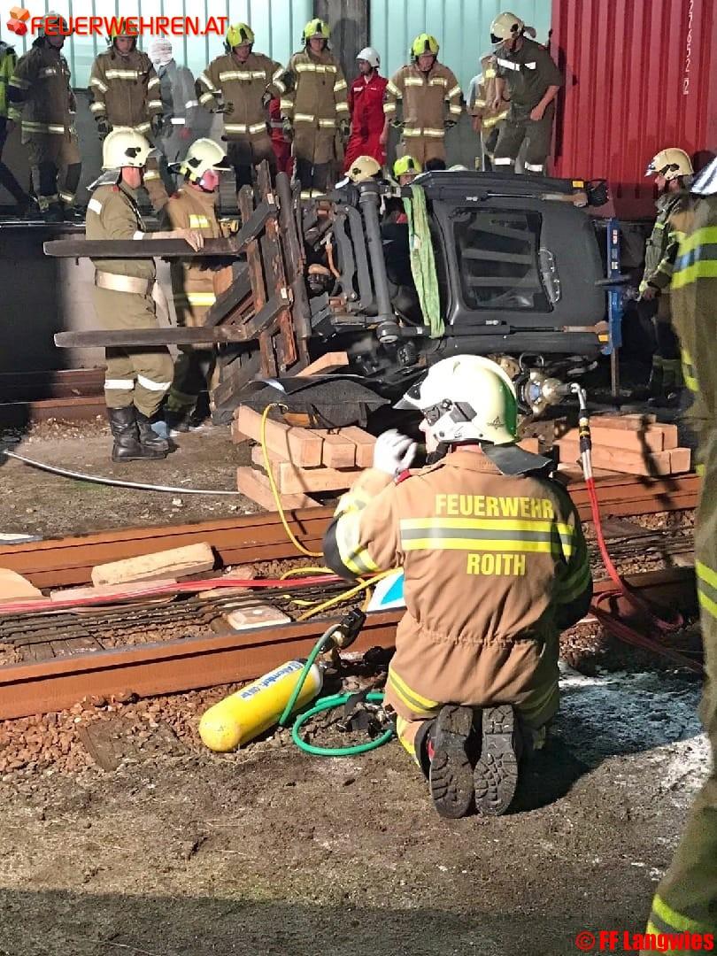 Am 25.09.2017 um 20:45 Uhr wurden die Kameraden der Feuerwehren Ebensee, Langwies und Roith zu einer Personenrettung alarmiert. Beim Eintreffen wurde ein Gabelstapler vorgefunden, welcher beim Verladen eines Eisenbahnwaggons seitlich ca. 1,5m abstürzte.