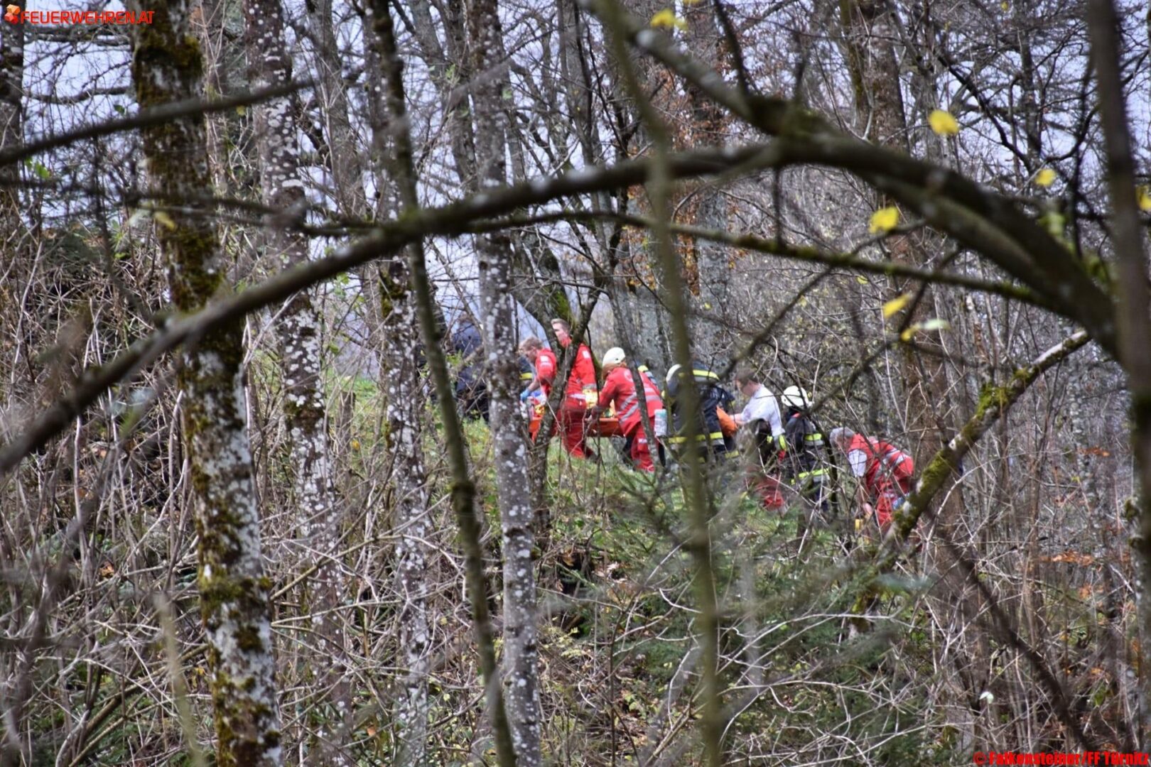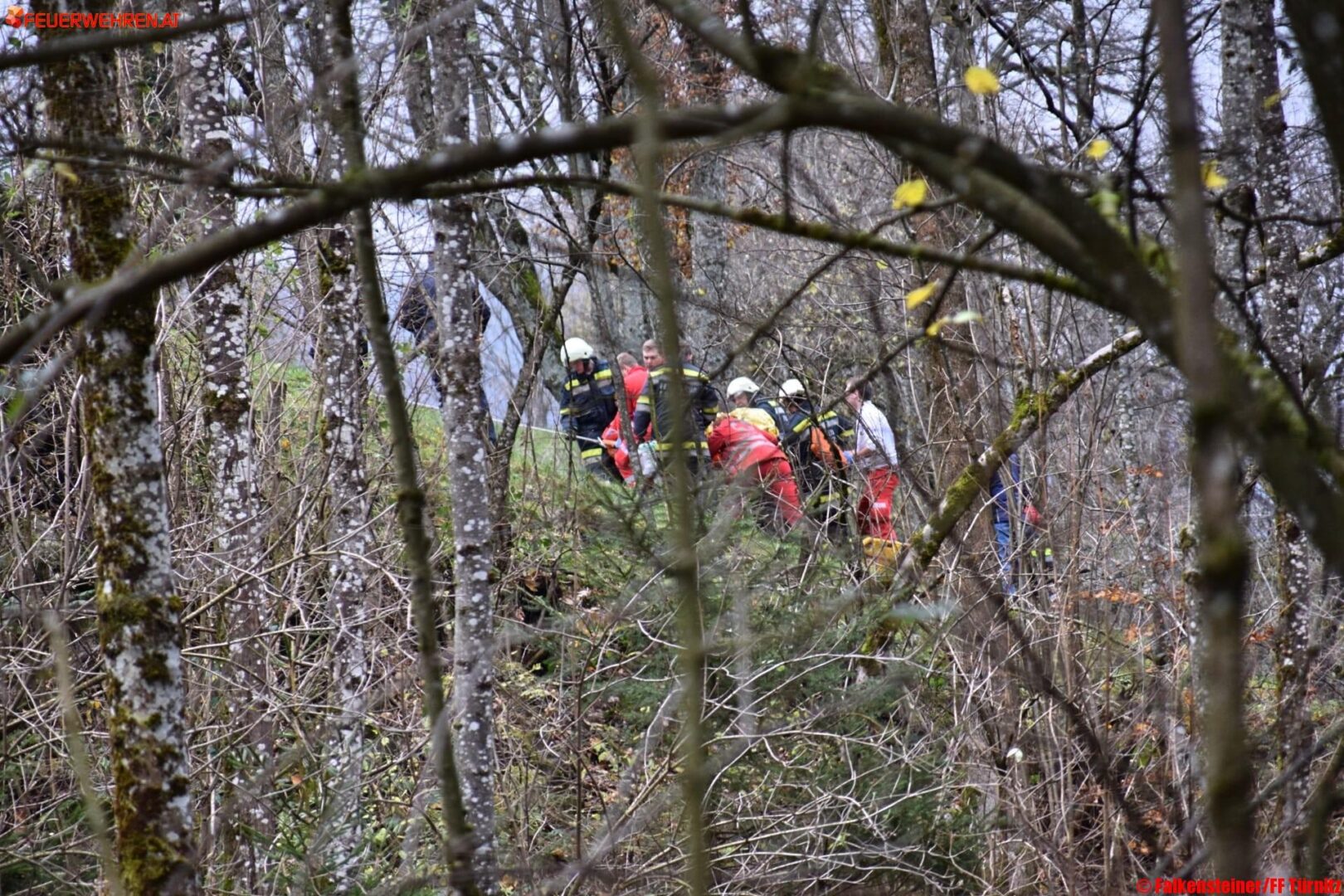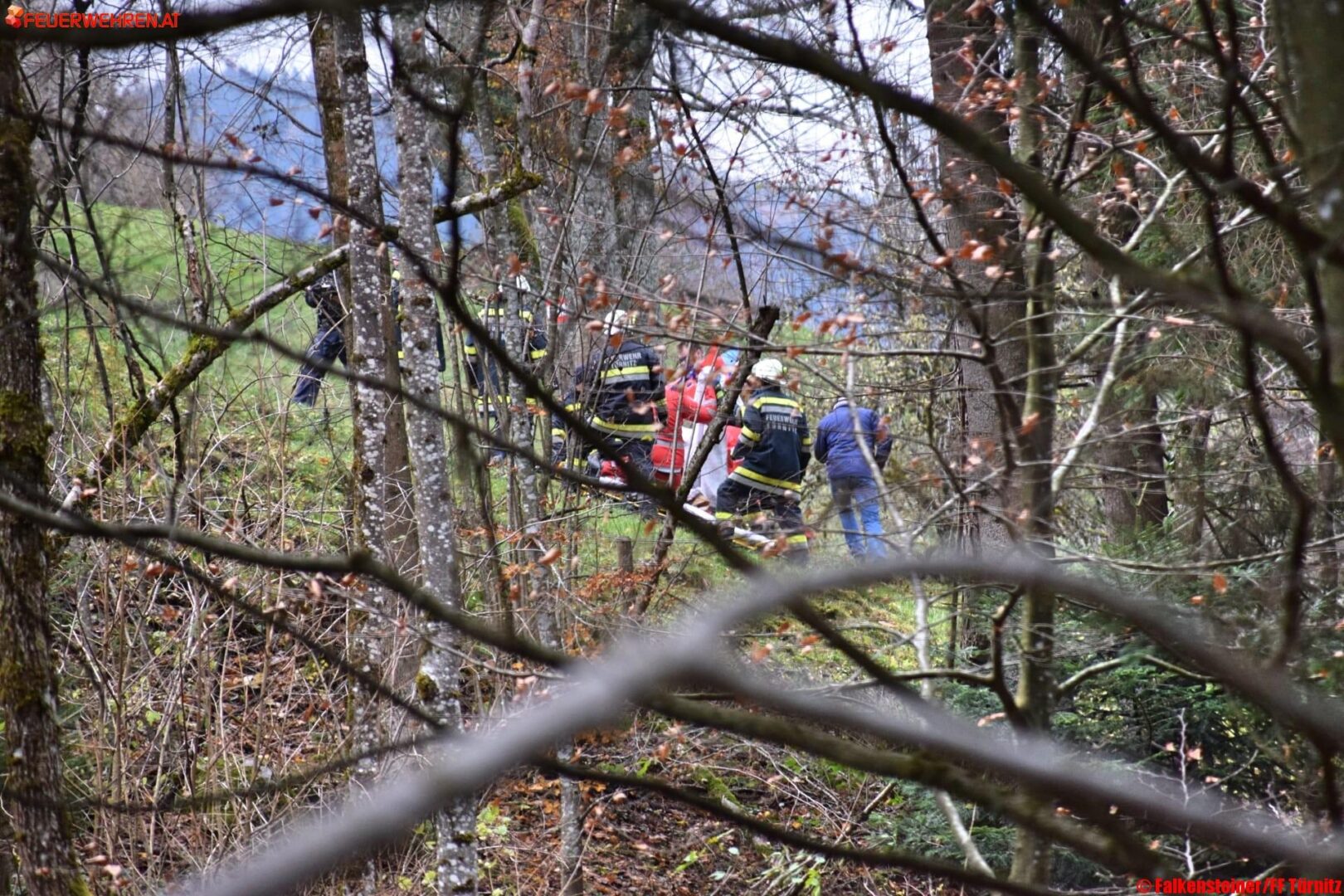 Gemeinsam mit Feuerwehr und Rettung wurde der Verletze mit einer Korbschleiftrage von dem steilen Gelände geborgen und zur weiteren Versorgung zum Rettungsauto transportiert.
