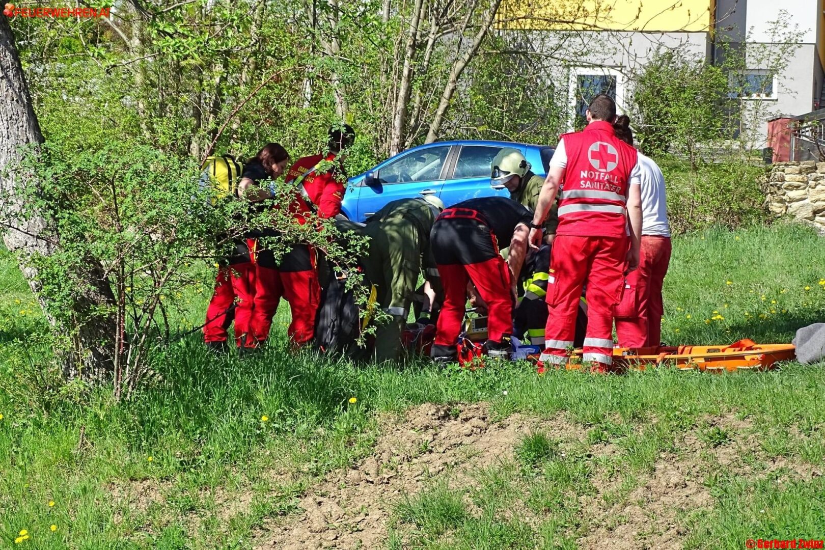 Die verletzte Person wurde nach der Erstversorgung und Stabilisierung der dort anwesenden Notärztin mittels Muskelkraft von der Feuerwehr St.Johann herausgehoben.