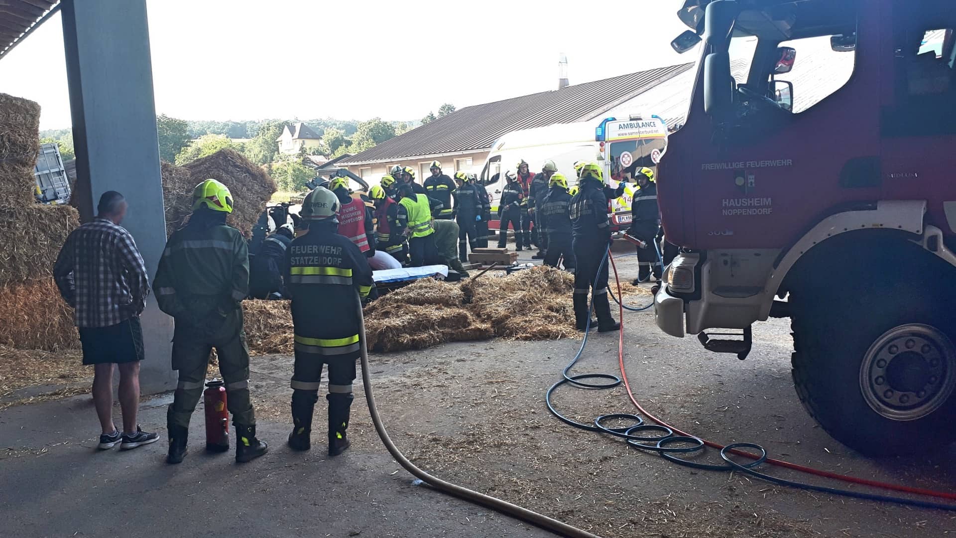 Zu einem dramatischen Einsatz wurde die Freiwillige Feuerwehr Statzendorf am Freitag, den 31. Juli alarmiert. Am späten Nachmittag stürzte ein Strohballen auf einen Hoflader und verletzte einen Arbeiter unbestimmten Grades.