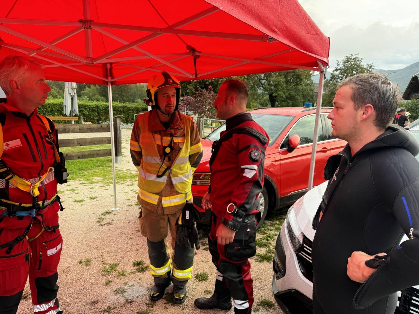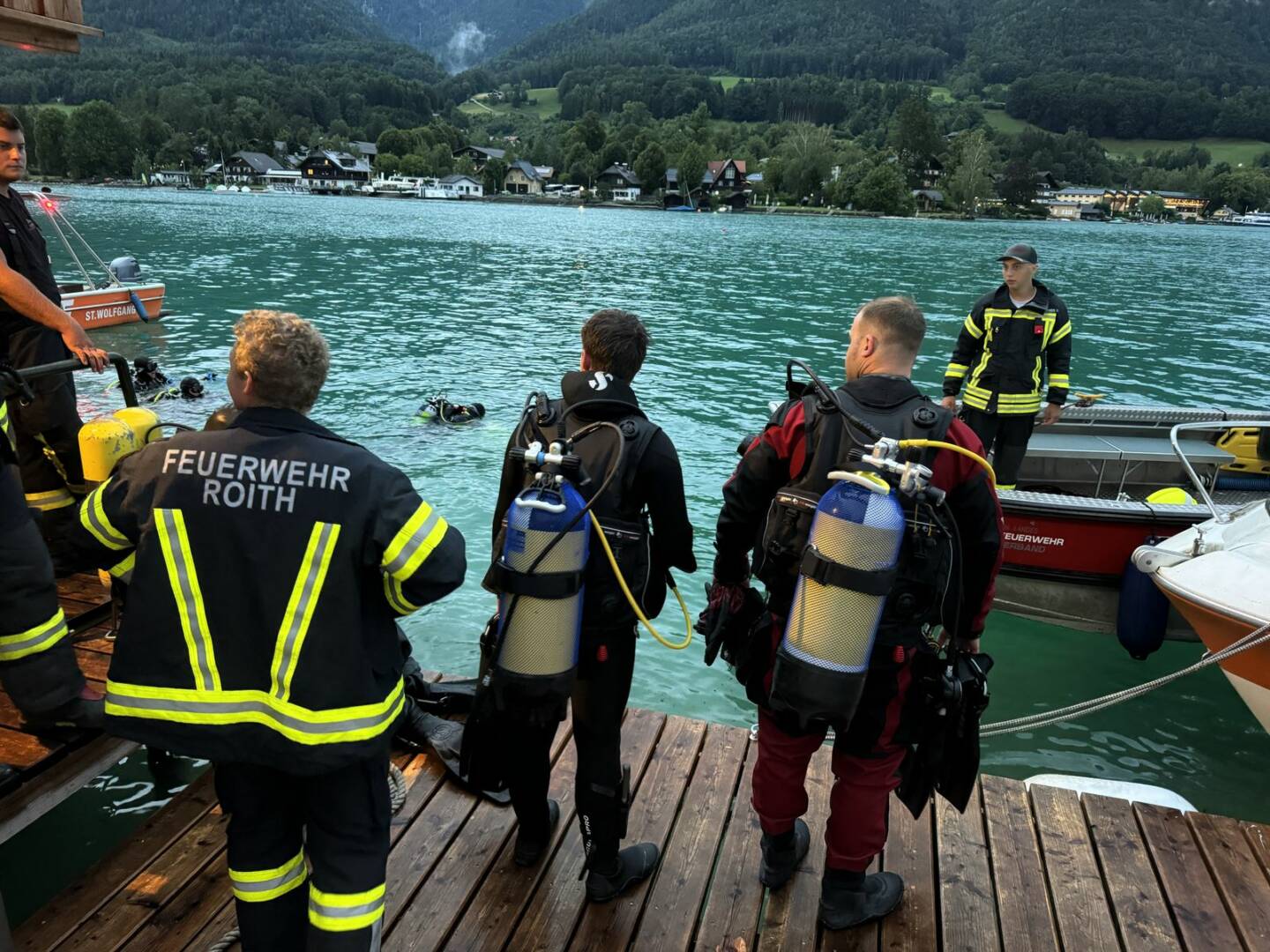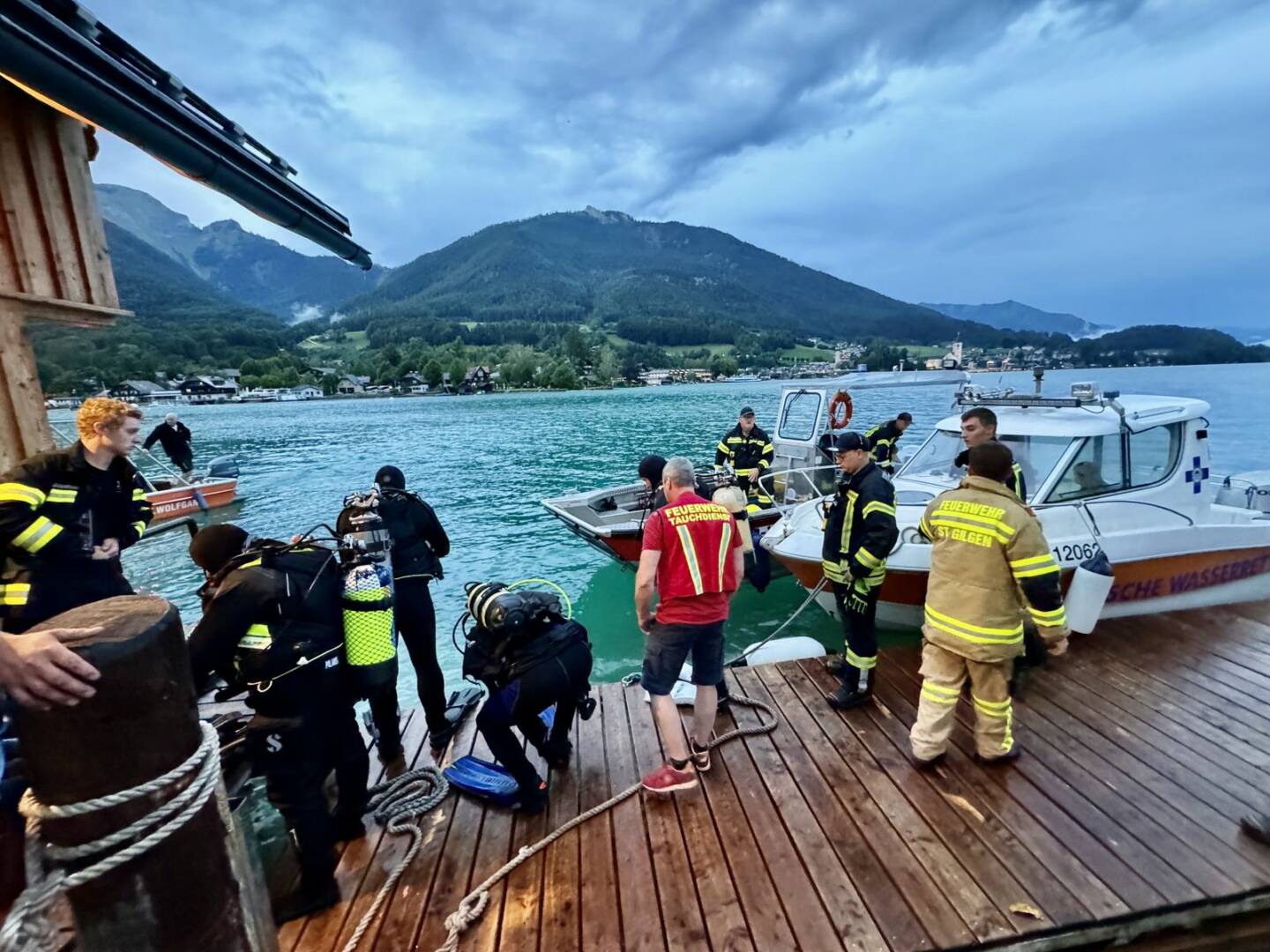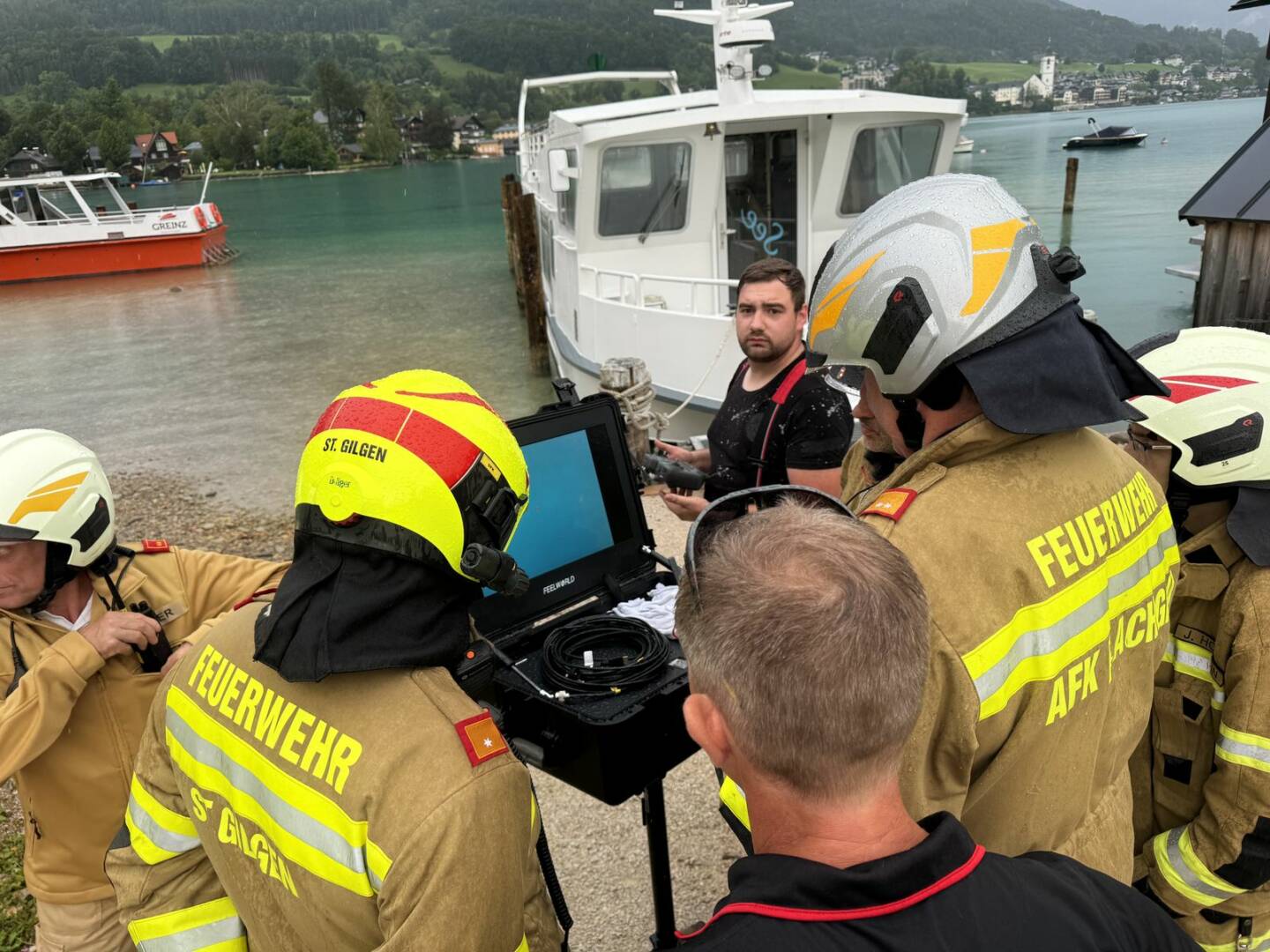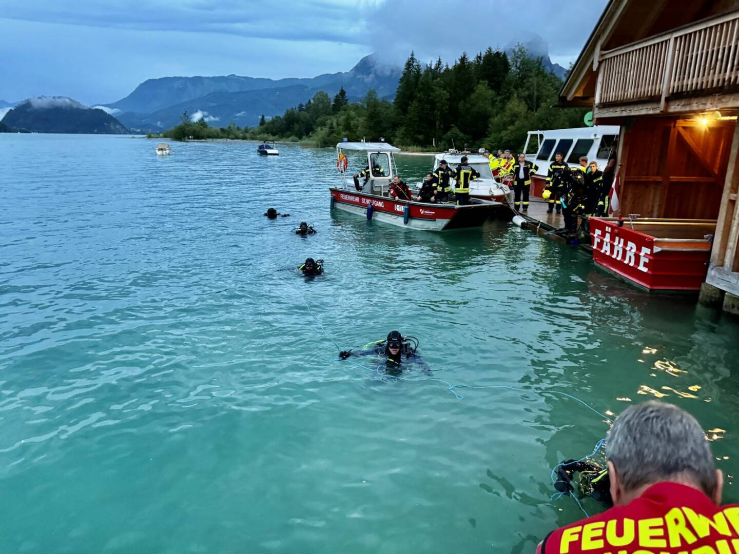 Die oberösterreichischen Feuerwehrtaucher unterstützten die Taucher der Salzburger Wasserrettung und die Einsatzkräfte der Feuerwehren Abersee, St. Gilgen und St. Wolfgang bei der Suche nach einem untergegangenen Familienvater. Der Familienvater war mit seinen Kindern im Wolfgangsee im Bereich Abersee schwimmen, dabei ging er plötzlich unter. Im Rahmen des Taucheinsatzes wurde der Mann mittels einer Tauchsuchkette gefunden und geborgen.