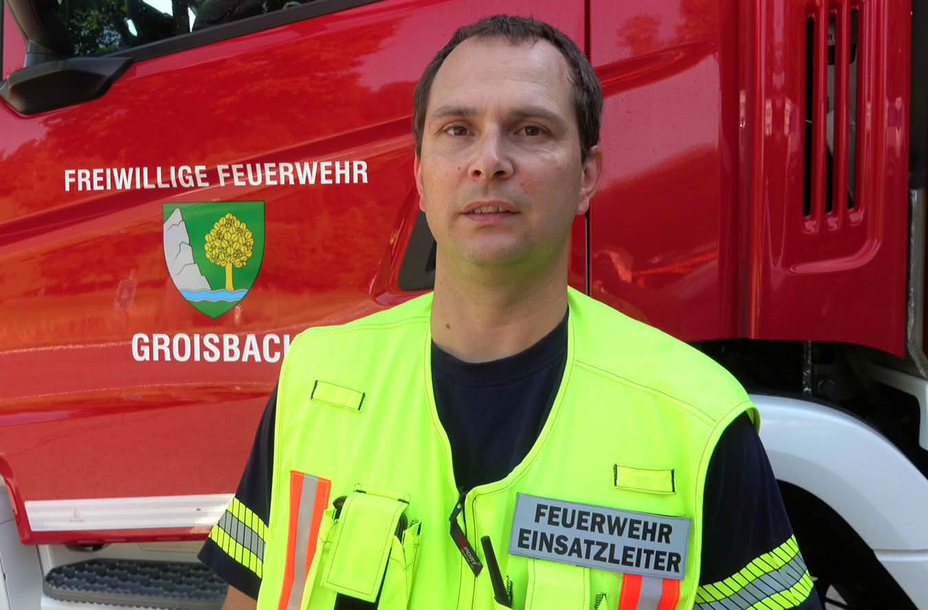 „Als wir am Einsatzort eingetroffen sind, haben wir festgestellt, dass sich kein Fahrer mehr im Unfallwagen bzw. am Unfallort befand, jedoch Blutspuren im Fahrzeug zu sehen waren. Daher starteten wir sofort auch mit einer Personensuche“, so Feuerwehreinsatzleiter OBI Martin Handl Kommandant der FF Groisbach.