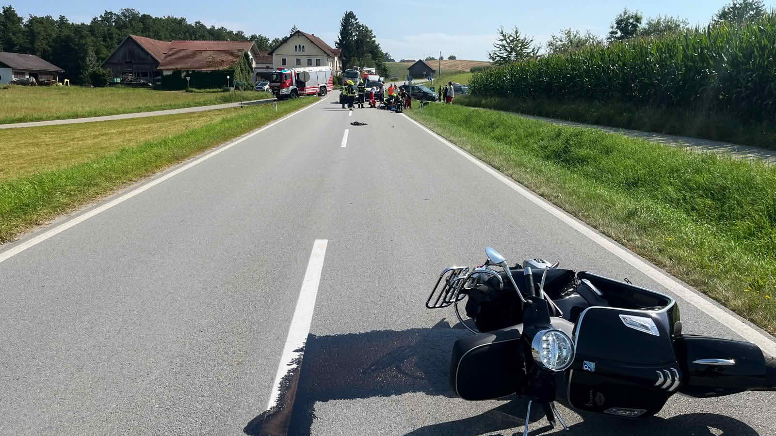 Die mit vier Einsatzfahrzeugen zum Unfallort ausgerückten Einsatzkräfte der Feuerwehr Andorf führten Sicherungsarbeiten durch, wirkten unterstützend bei der medizinischen Versorgung des Motorradlenkers mit und bargen anschließend dessen Motorrad bzw. reinigten die Fahrbahn, sodass die Andorfer Landesstraße nach rund einer Stunde wieder für den Verkehr freigegeben werden konnte. Der schwer verletzte Motorradlenker wurde nach der Erstversorgung durch Rettungskräfte des Roten Kreuzes in ein Krankenhaus geflogen.