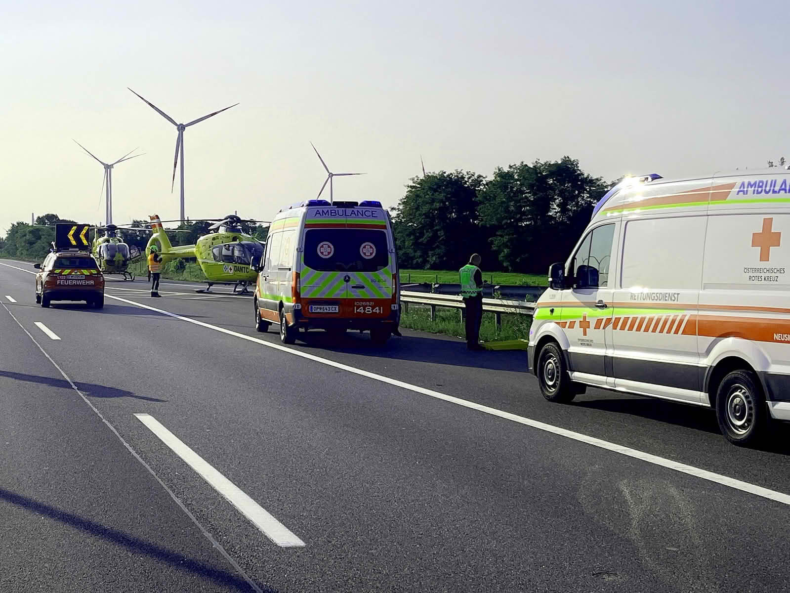 Neben der FF Neusiedl am See standen ebenfalls im Einsatz die Polizei, Rotes Kreuz und Samariterbund mit insgesamt drei Rettungswagen, zwei Notarzthubschrauber und die ASFINAG.