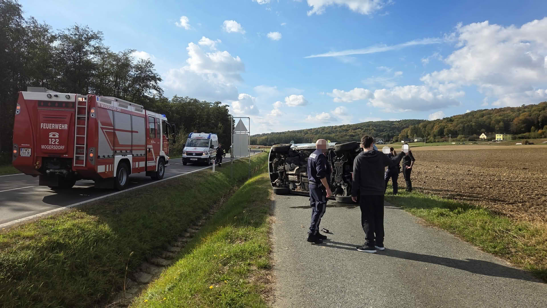 Am 14. Oktober 2025, wurde die Feuerwehr Mogersdorf um 14:45 Uhr mittels Sirenenalarm zu einem Verkehrsunfall auf der L116 Richtung Weichselbaum alarmiert.
