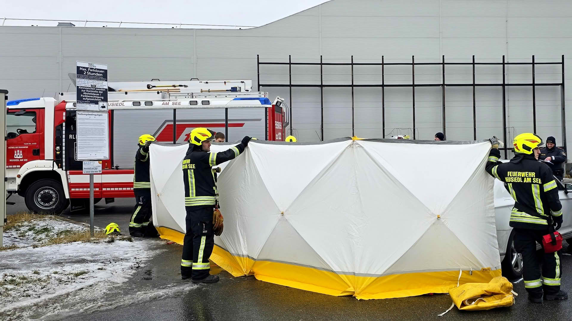 Die Freiwillige Feuerwehr Neusiedl am See baute einen Sichtschutz auf, unterstützte aktiv bei der Reanimation und entfernte im Anschluss die Fahrzeuge von der Fahrbahn.