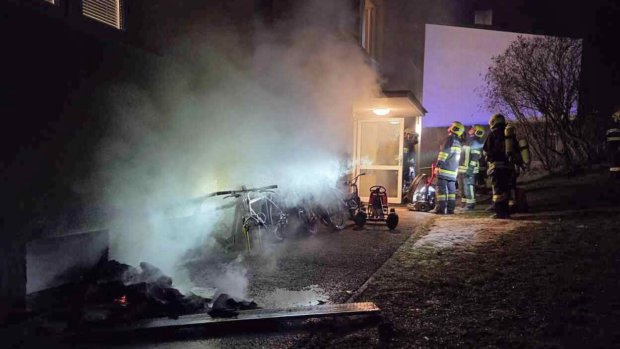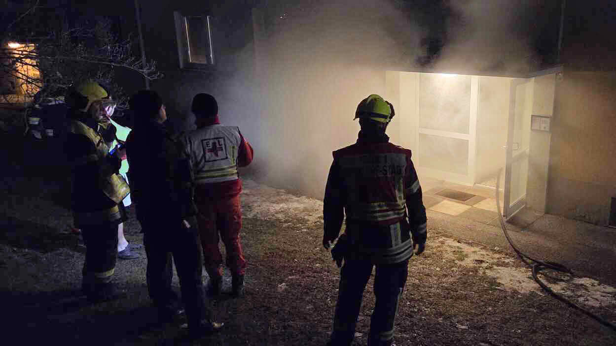 Ein Kellerbrand in einem Wohnblock in Veitsau riss in der Nacht auf Sonntag zahlreiche Bewohner aus dem Schlaf und löste einen Großeinsatz mehrerer Feuerwehren aus.