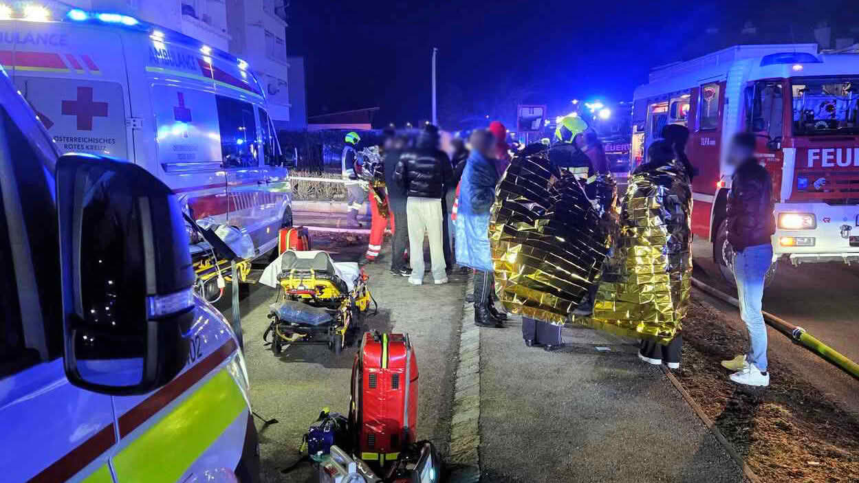Nach und nach trafen weitere Tanklöschfahrzeuge ein. Löschleitungen wurden verlegt, ein Atemschutzsammelplatz eingerichtet. Gemeinsam mit dem Roten Kreuz wurden die teils verschreckten Bewohner betreut – vom Baby bis zum Greis. Viele hatten nur das Nötigste am Leib und warteten in der eiskalten Nacht in den Einsatzfahrzeugen, eingehüllt in Decken.