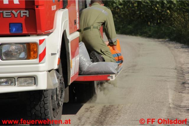 Am Freitag, den 26. August 2011 wurde die Feuerwehr Ohlsdorf von einem Landwirt alarmiert, dass sich auf der Fahrbahn zwischen der Ortschaft Irresberg und Hafendorf aufgrund eines technischen Defektes an einem Traktor eine ausgedehnte Ölspur befinde. Bei nahezu 36 Grad im Schatten rückten sieben Mann mit zwei Fahrzeugen aus und banden mit Ölbindemittel das Öl auf der Fahrbahn.