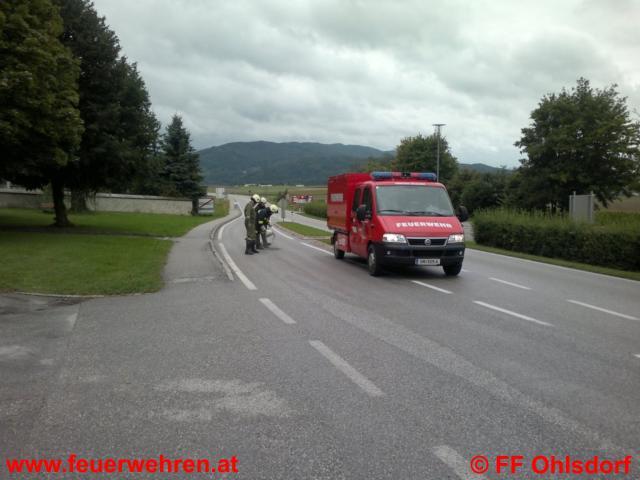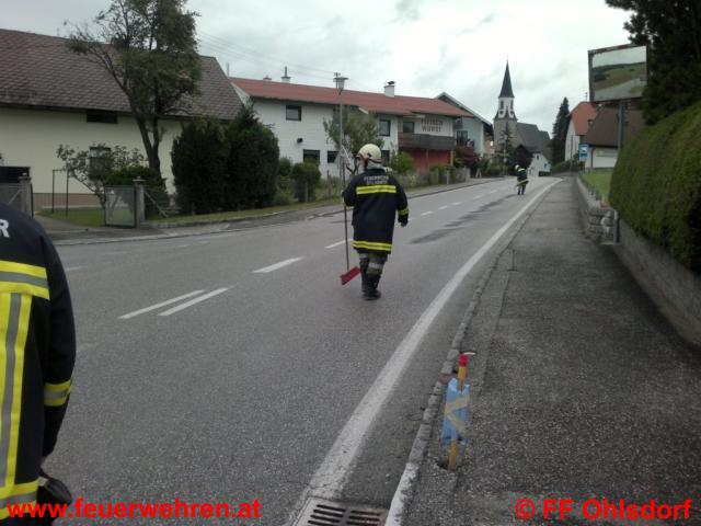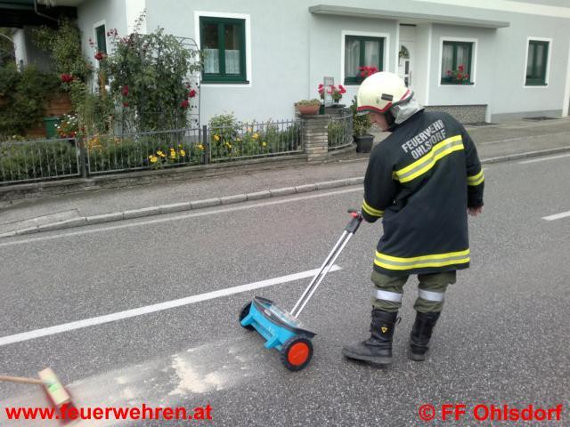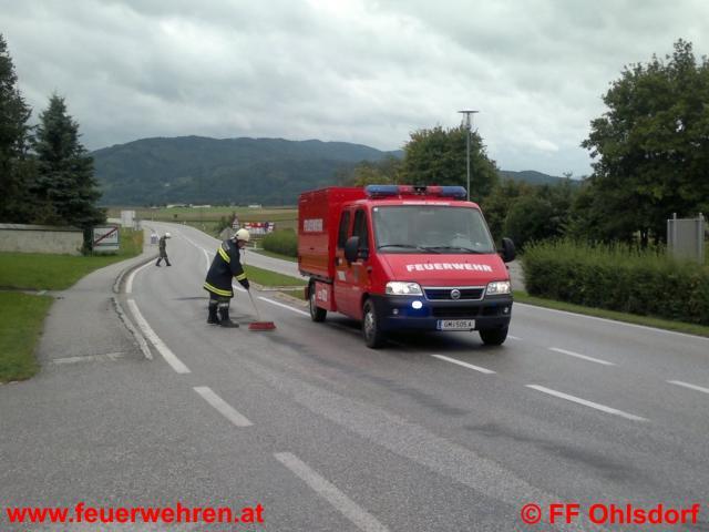 Anfangs zu einer Ölspur zwischen den Ortschaften Ehrendorf und Ehrenfeld wurde die Feuerwehr Ohlsdorf am Donnerstag, den 08. September 2011 um 10:49 Uhr alarmiert. Erste Erkundungen durch das Kommandofahrzeug und durch mehrfache Meldungen aus der Bevölkerung ergaben, dass sich die Ölspur durch mehrere Ortschaften durch weiter auf die Gemeinde Desselbrunn ausbreitete. Da die Straße regennass war, verteilte sich das ausgetretene Öl quer über die Fahrbahn. Leider wurde kein Verursacher für die Öleinsatz gefunden.